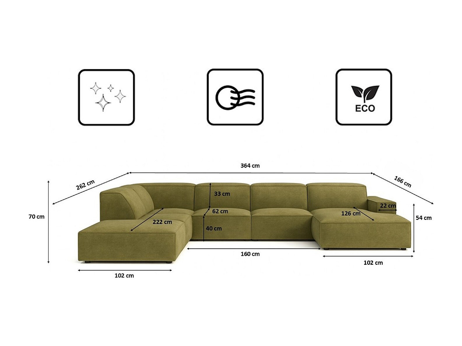 Divano angolare a U Cursal V, tessuto Salvador, oliva, sinistra
