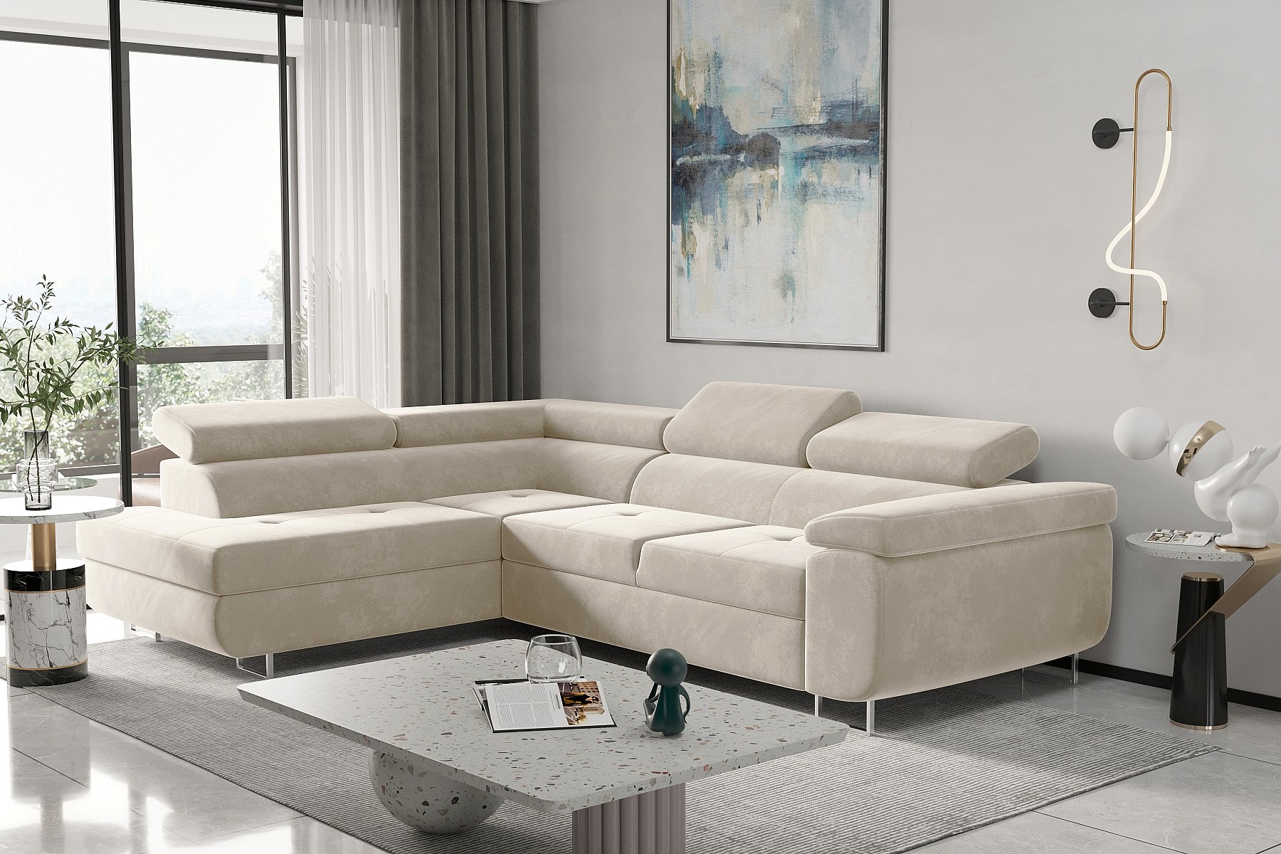 Divano angolare ATOM con funzione letto, tessuto Monolith, ecrù, sinistro