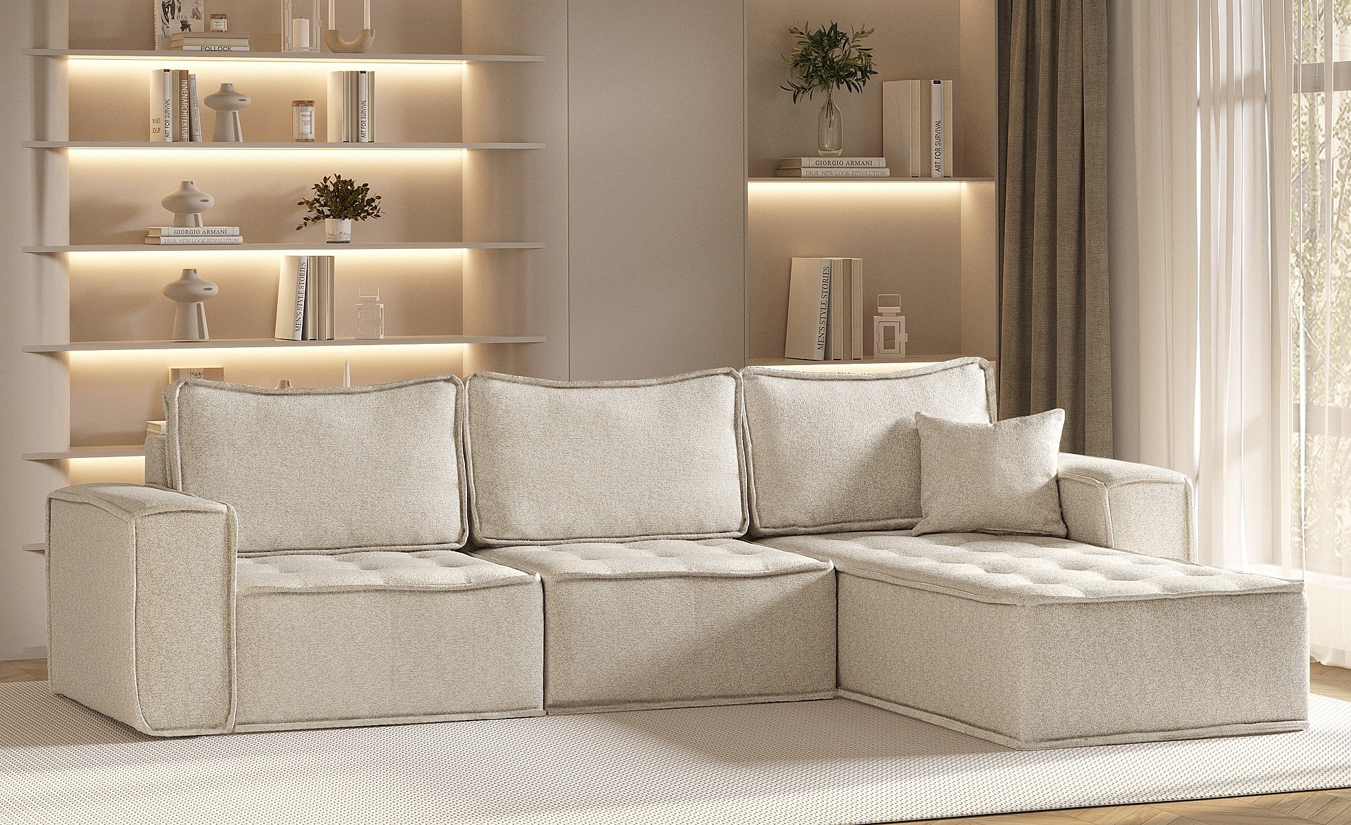 Divano angolare Bohoo Maxi L-from, tessuto Raven, Champagne, destra