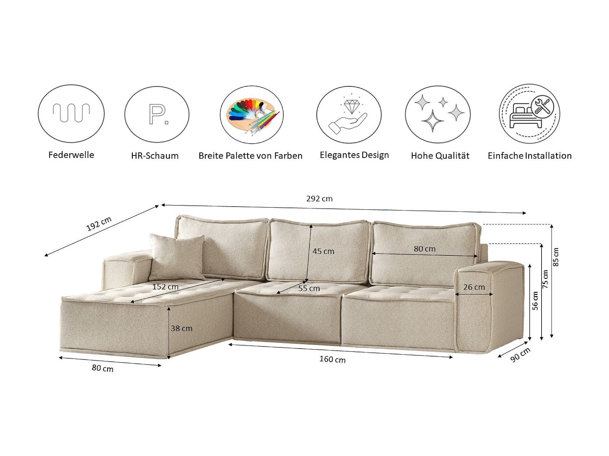 Divano angolare Bohoo Maxi L-from, tessuto Raven, Champagne, sinistro