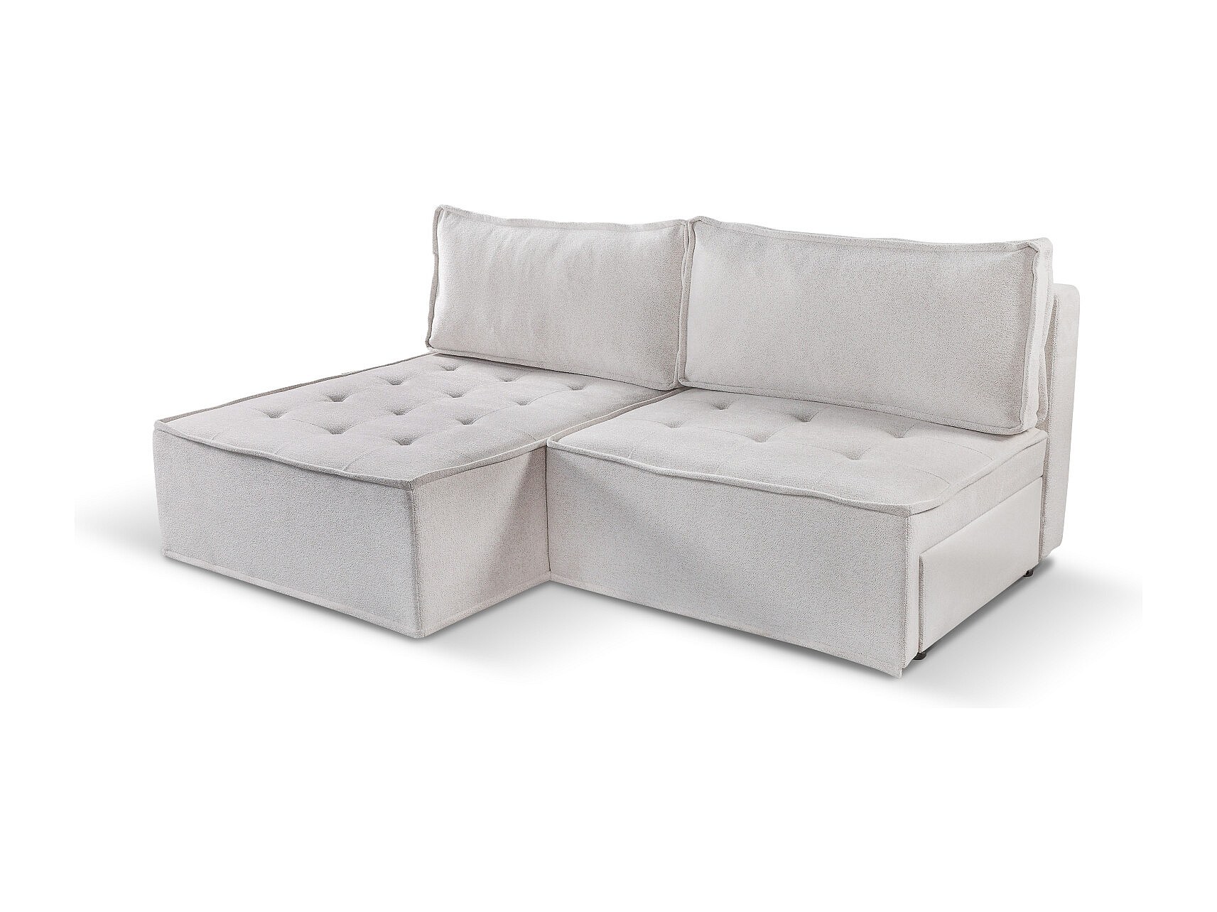 Divano angolare Bohoo Mini con funzione letto, tessuto Raven, beige chiaro, sinistra