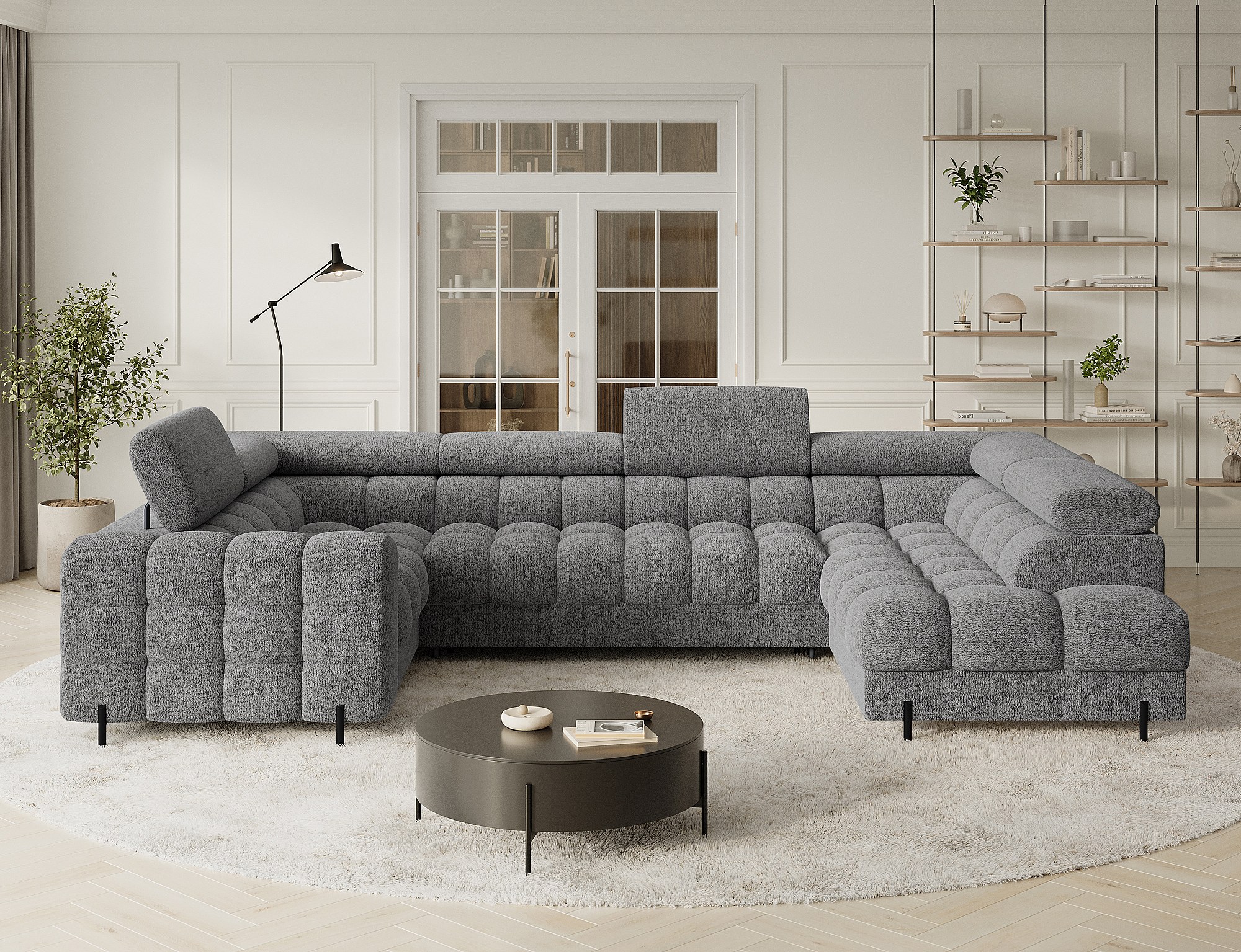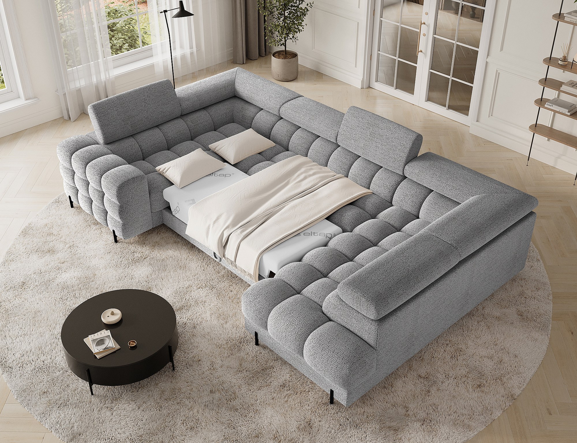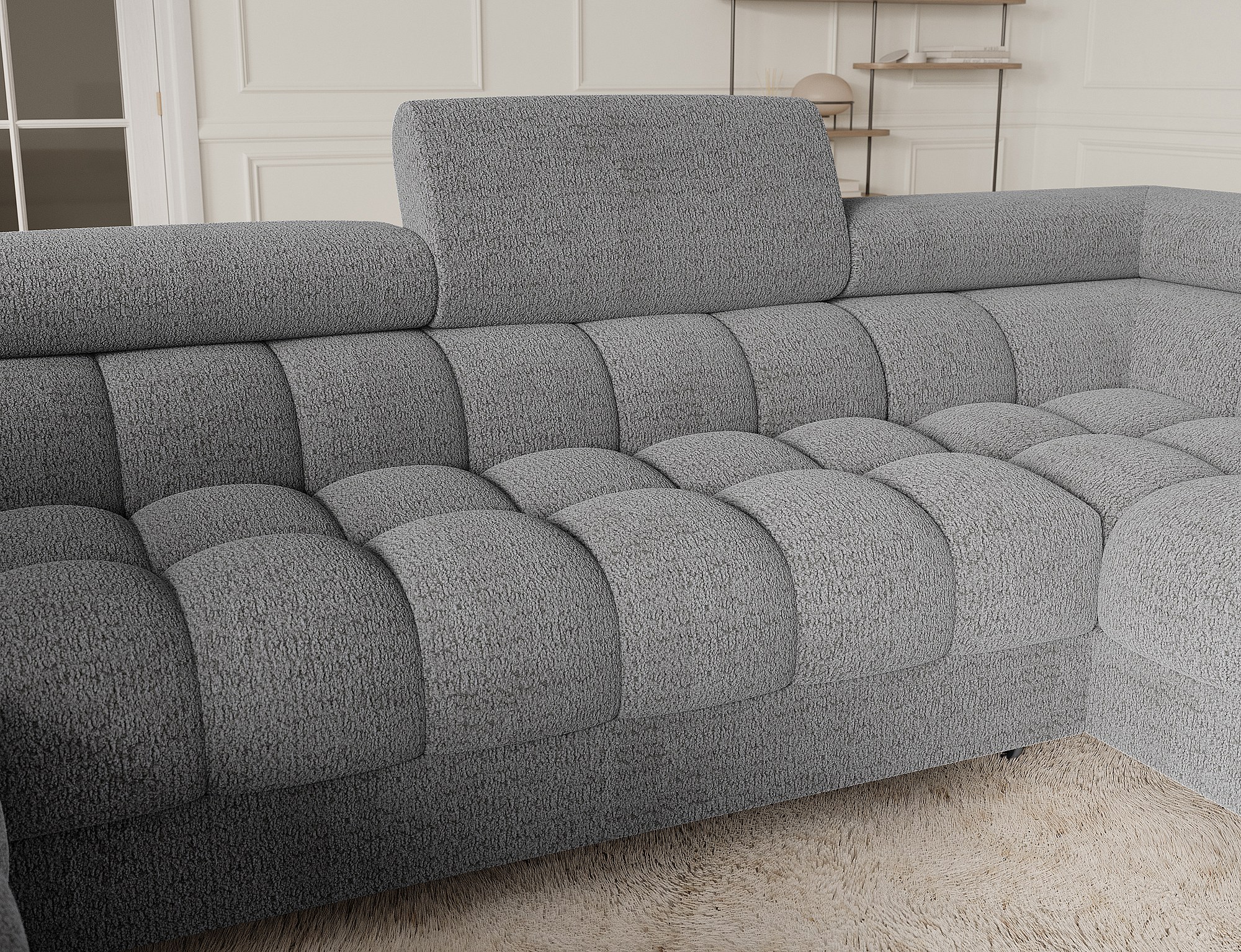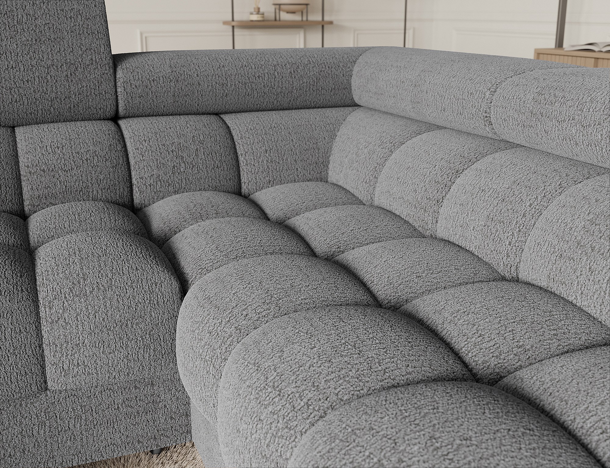 Divano angolare Brasilia UR/rivestimento in tessuto/contenitore letto e letto/Beige-Bouclé