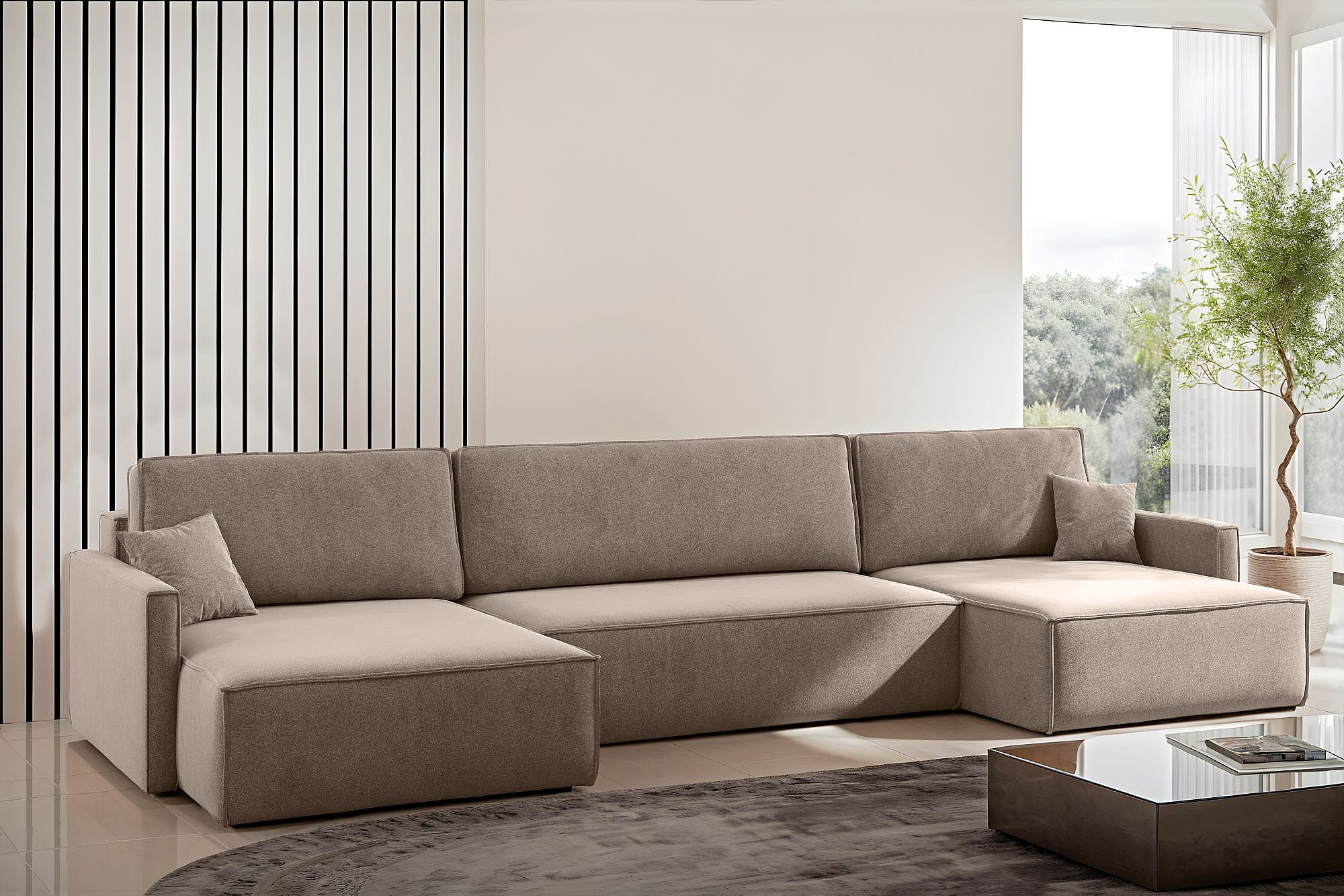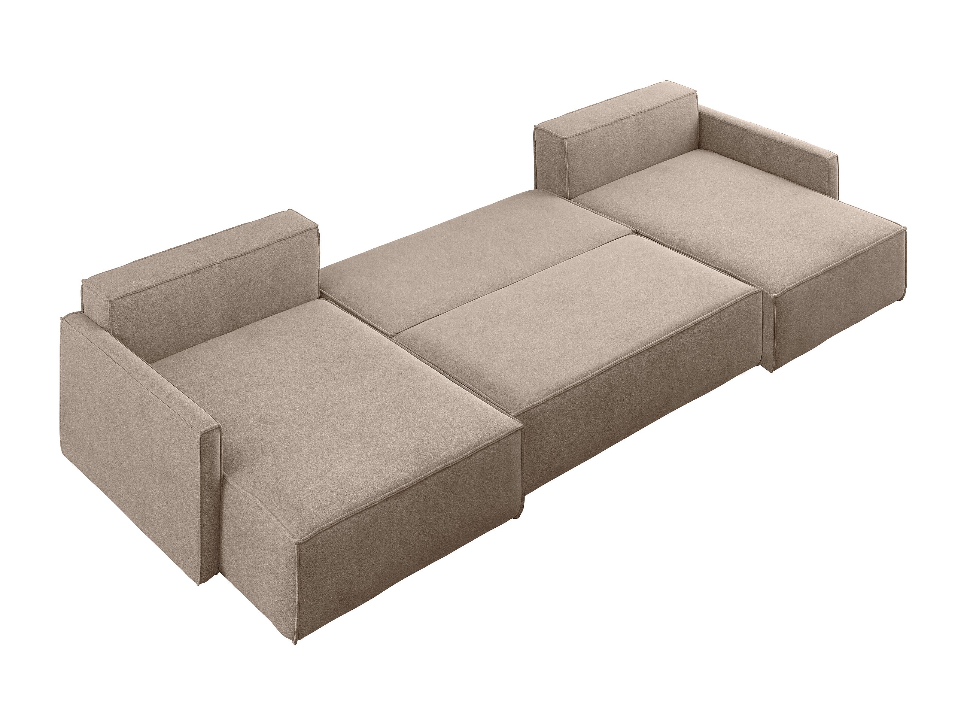 Divano angolare Carlos a U con funzione letto e contenitore, tessuto Salvador beige scuro