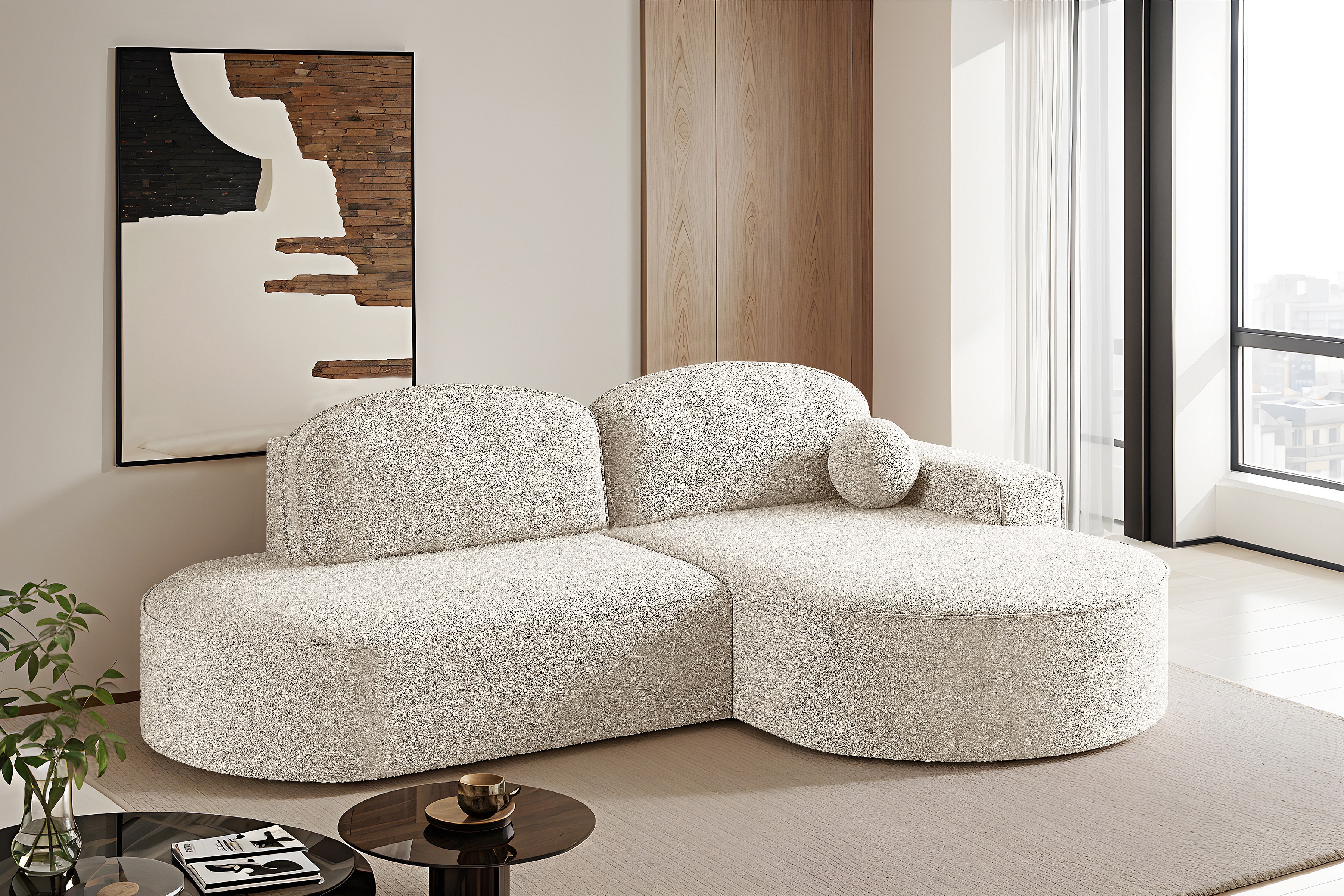 Divano angolare con funzione letto e box letto Modena Round tessuto Arena Ecru Right