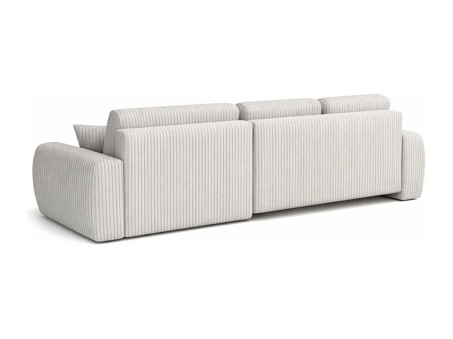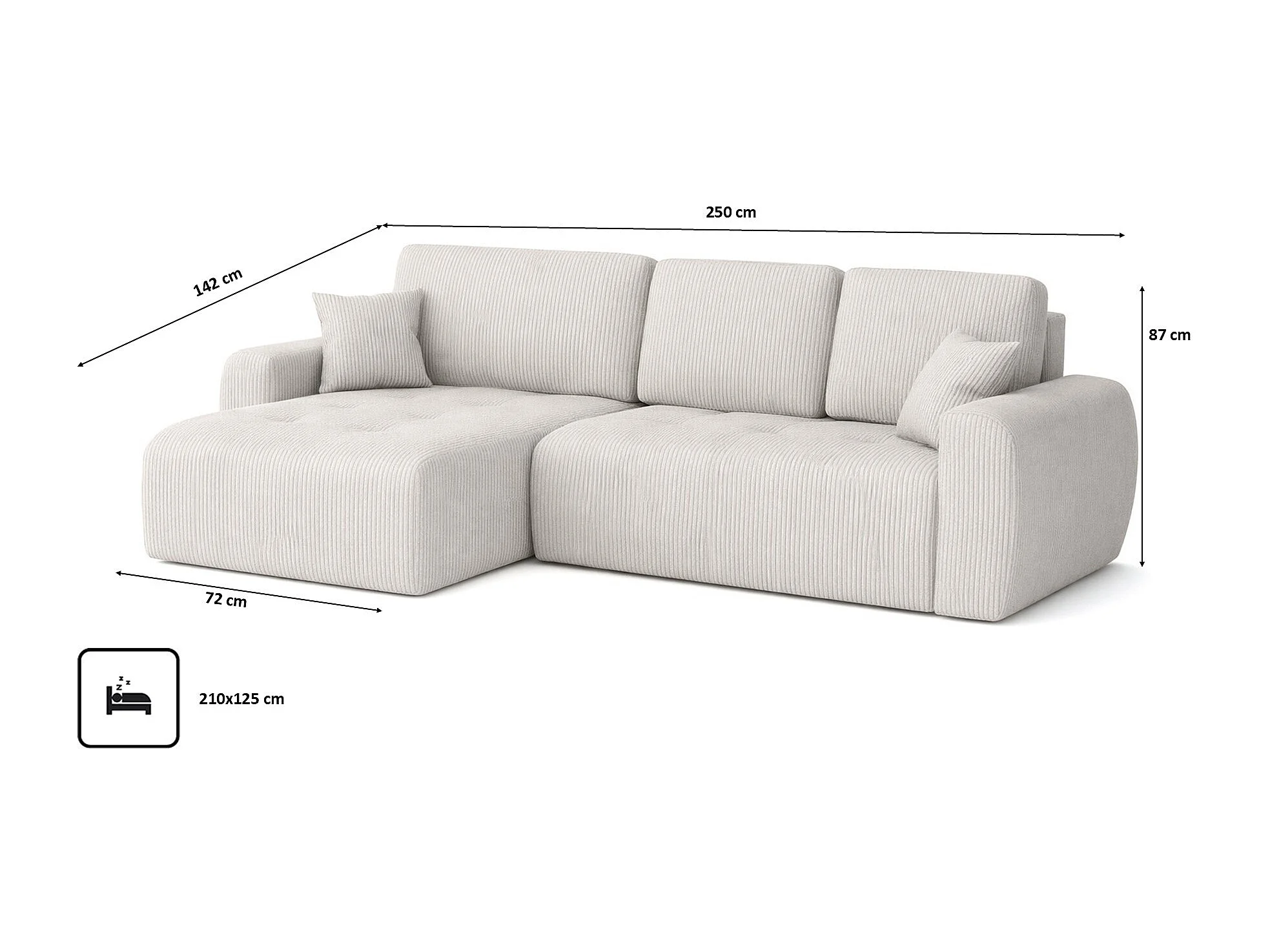Divano angolare con funzione letto e contenitore a forma di L Ivo L, tessuto a coste Poso, Beige, Sinistra