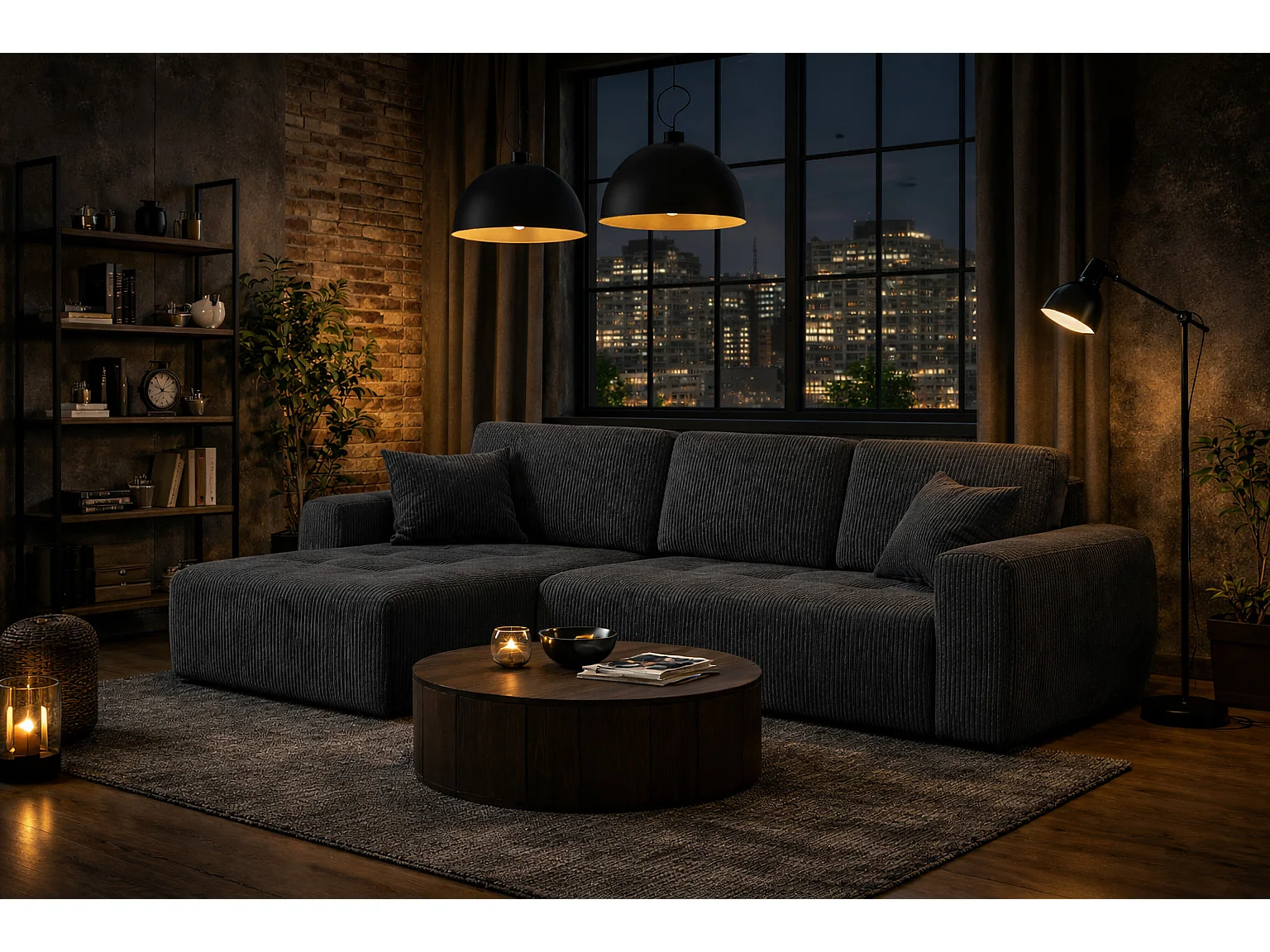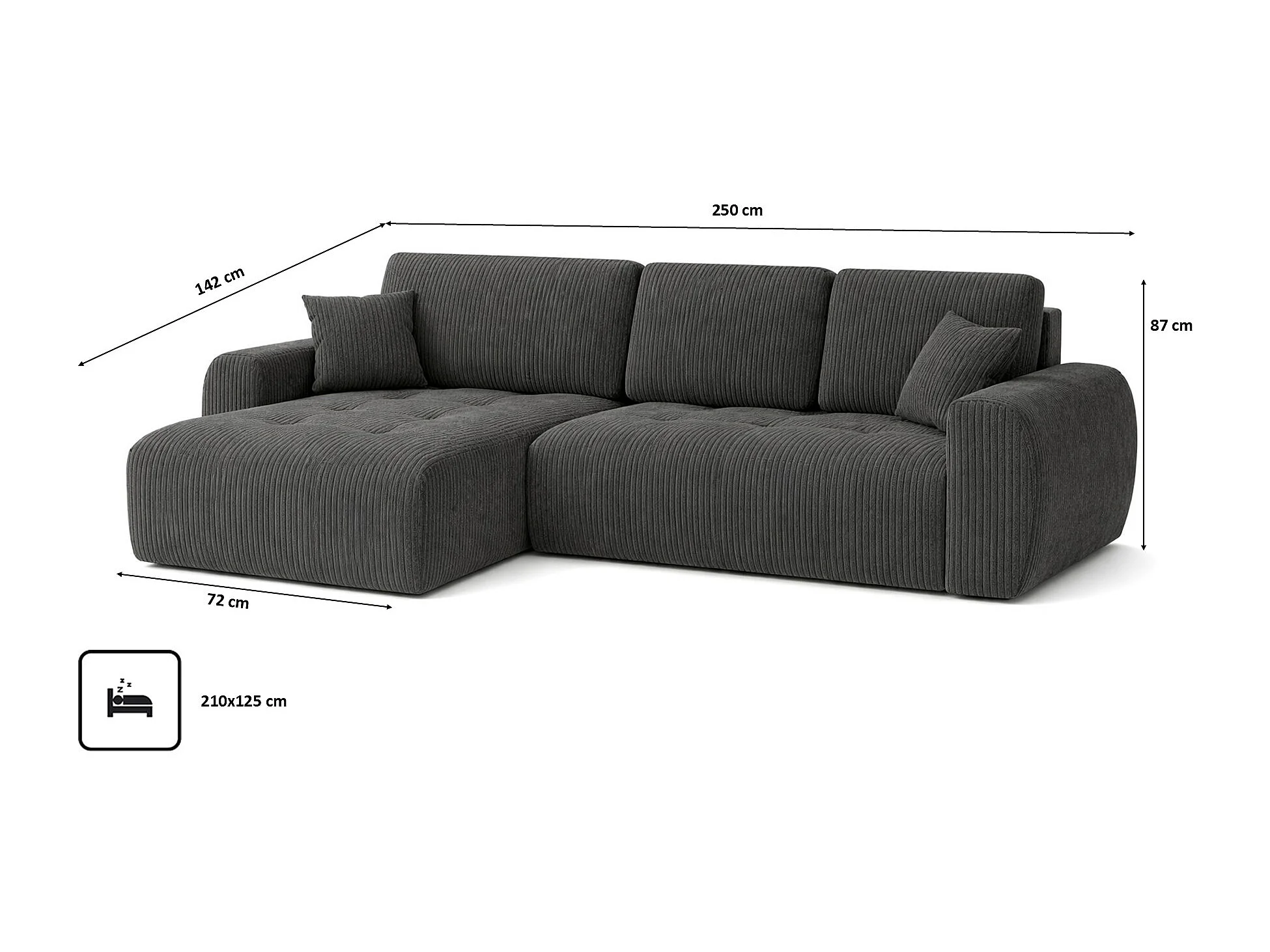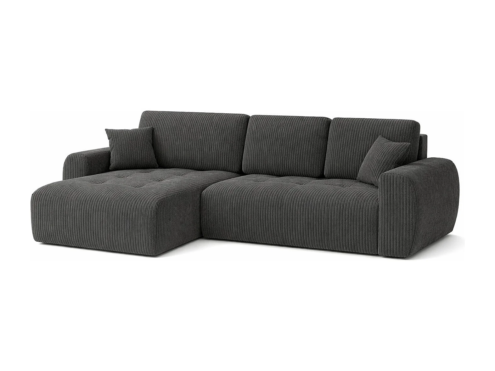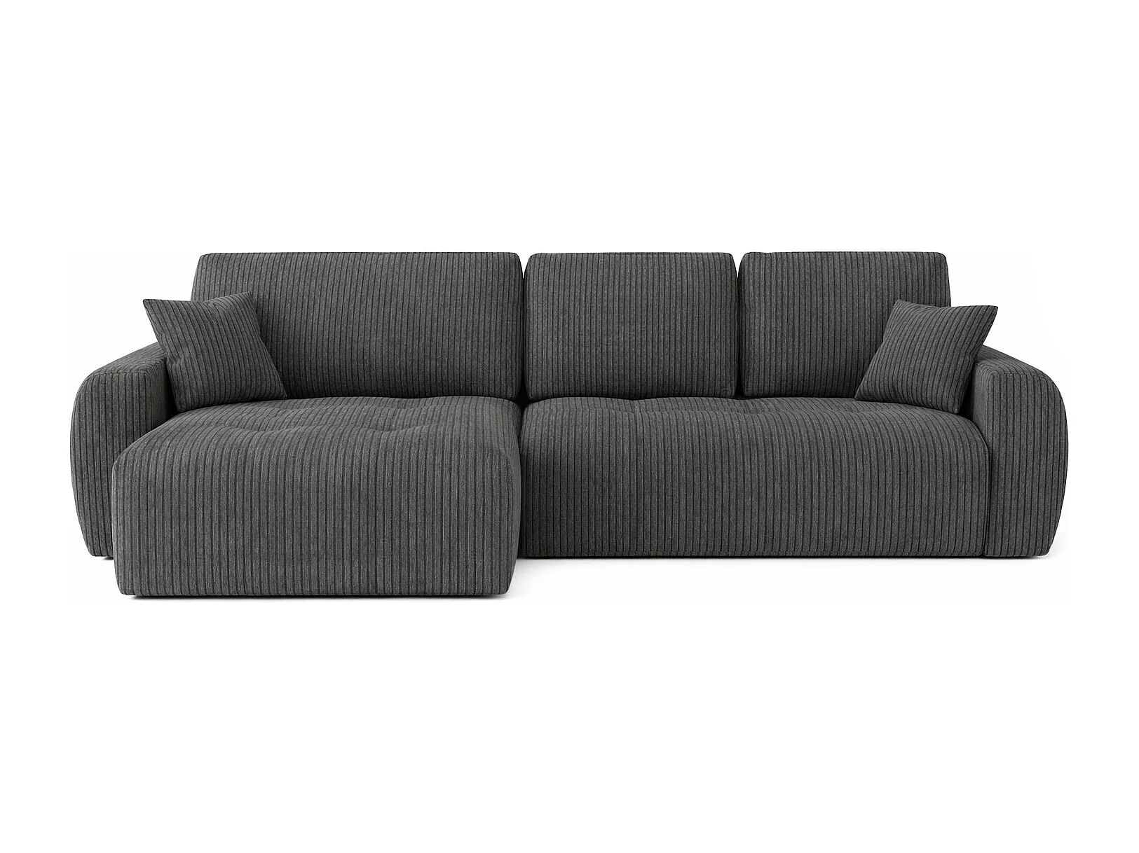 Divano angolare con funzione letto e contenitore a forma di L Ivo L, tessuto a coste Poso, Grigio, Sinistra