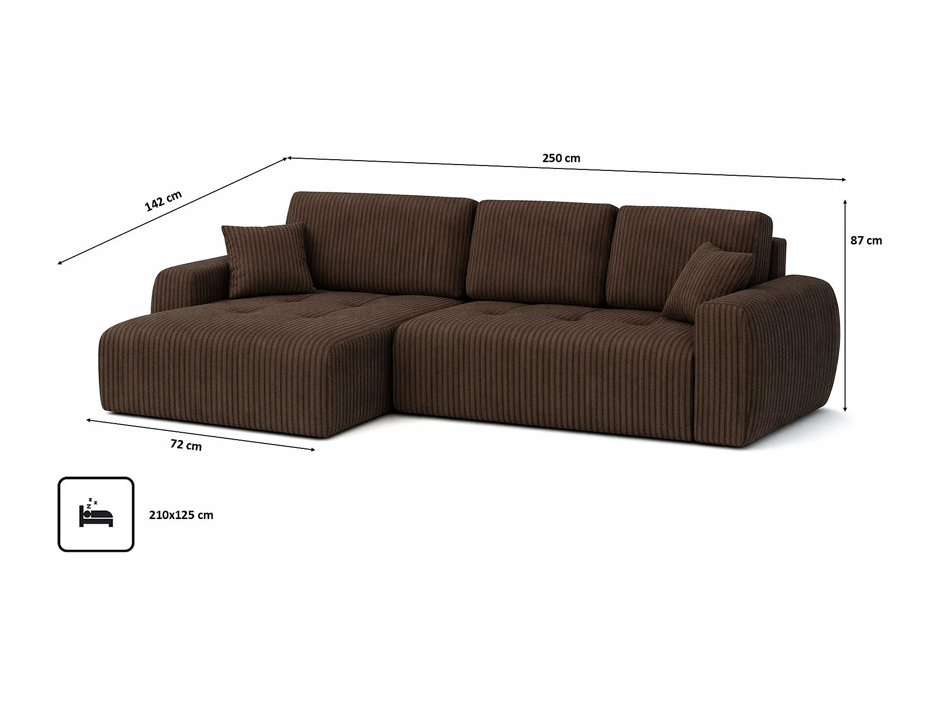 Divano angolare con funzione letto e contenitore a forma di L Ivo L, tessuto a coste Poso, Marrone, Sinistra