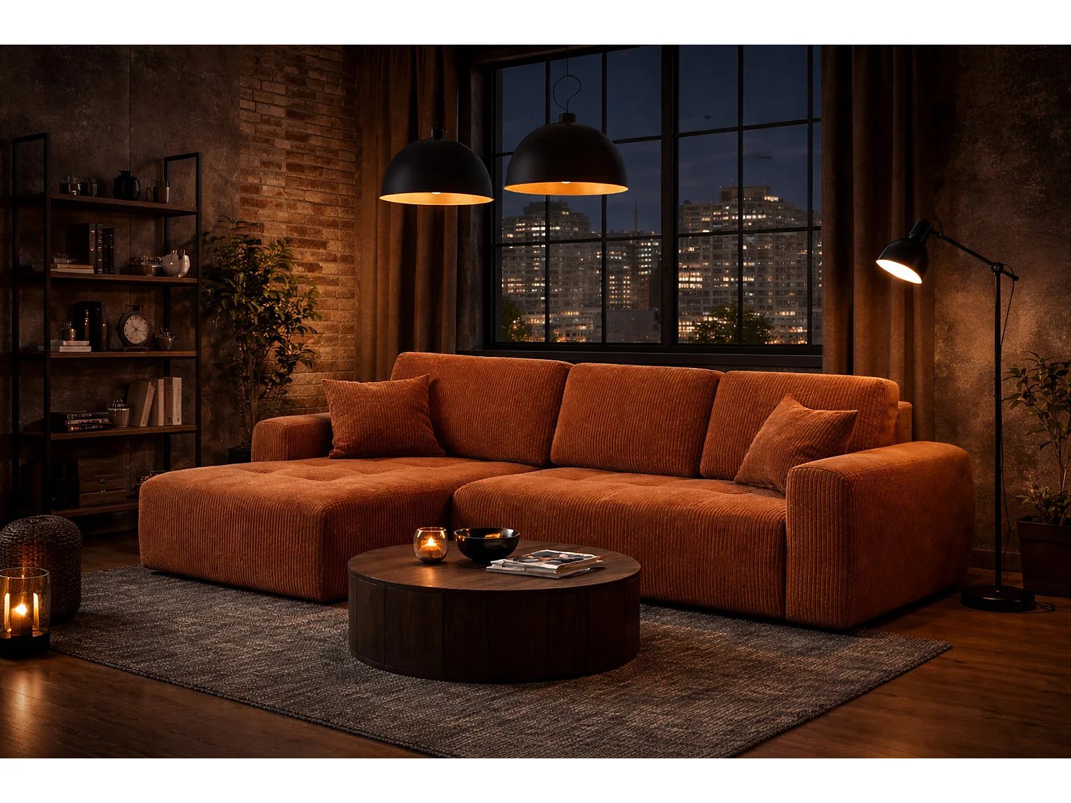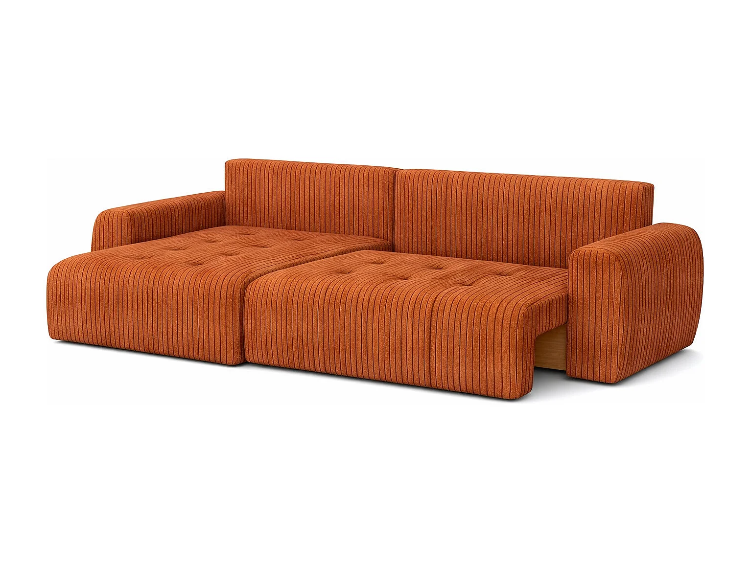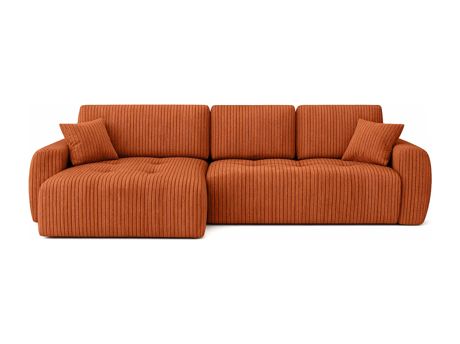 Divano angolare con funzione letto e contenitore a forma di L Ivo L, tessuto a coste Poso, Rame, Sinistra