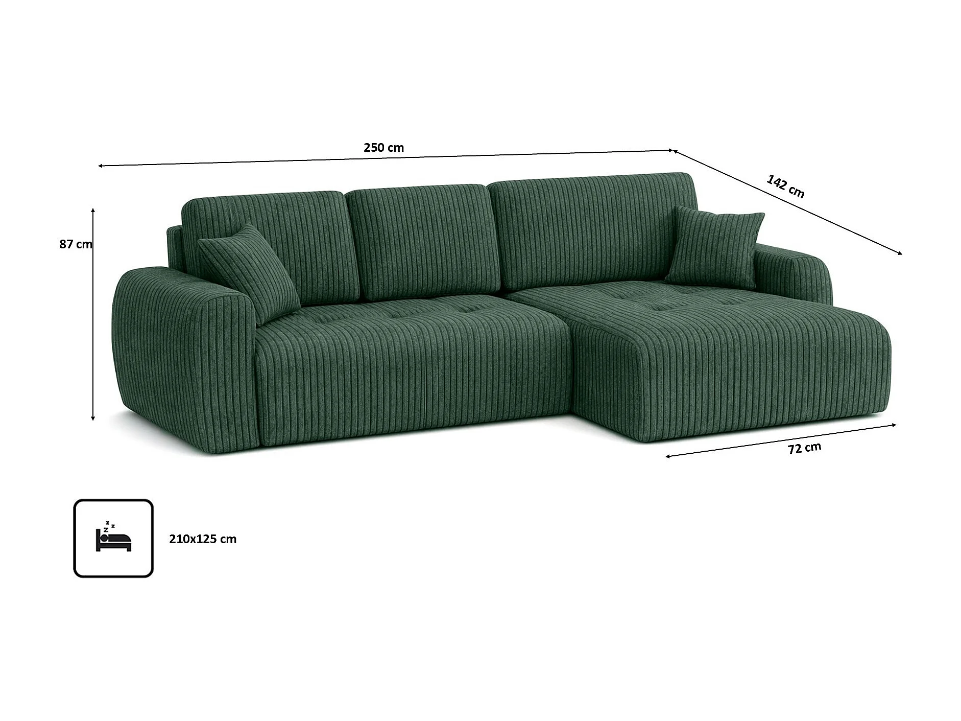 Divano angolare con funzione letto e contenitore a forma di L Ivo L, tessuto a coste Poso, Verde, Destra