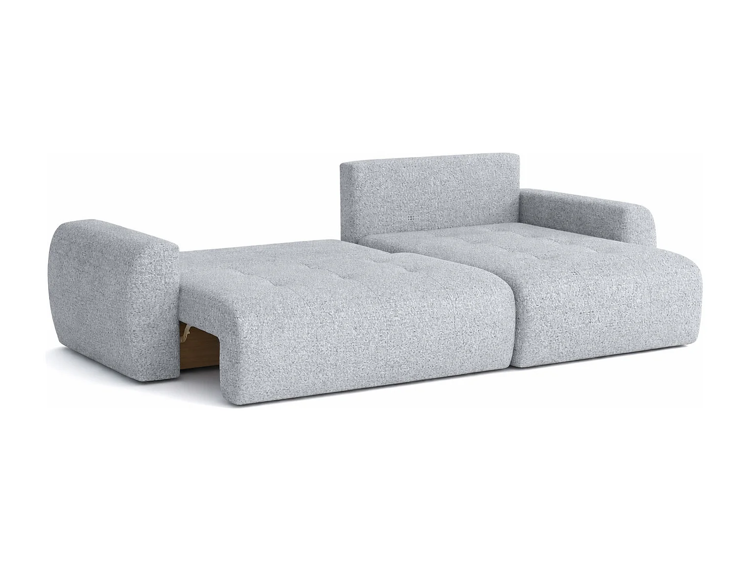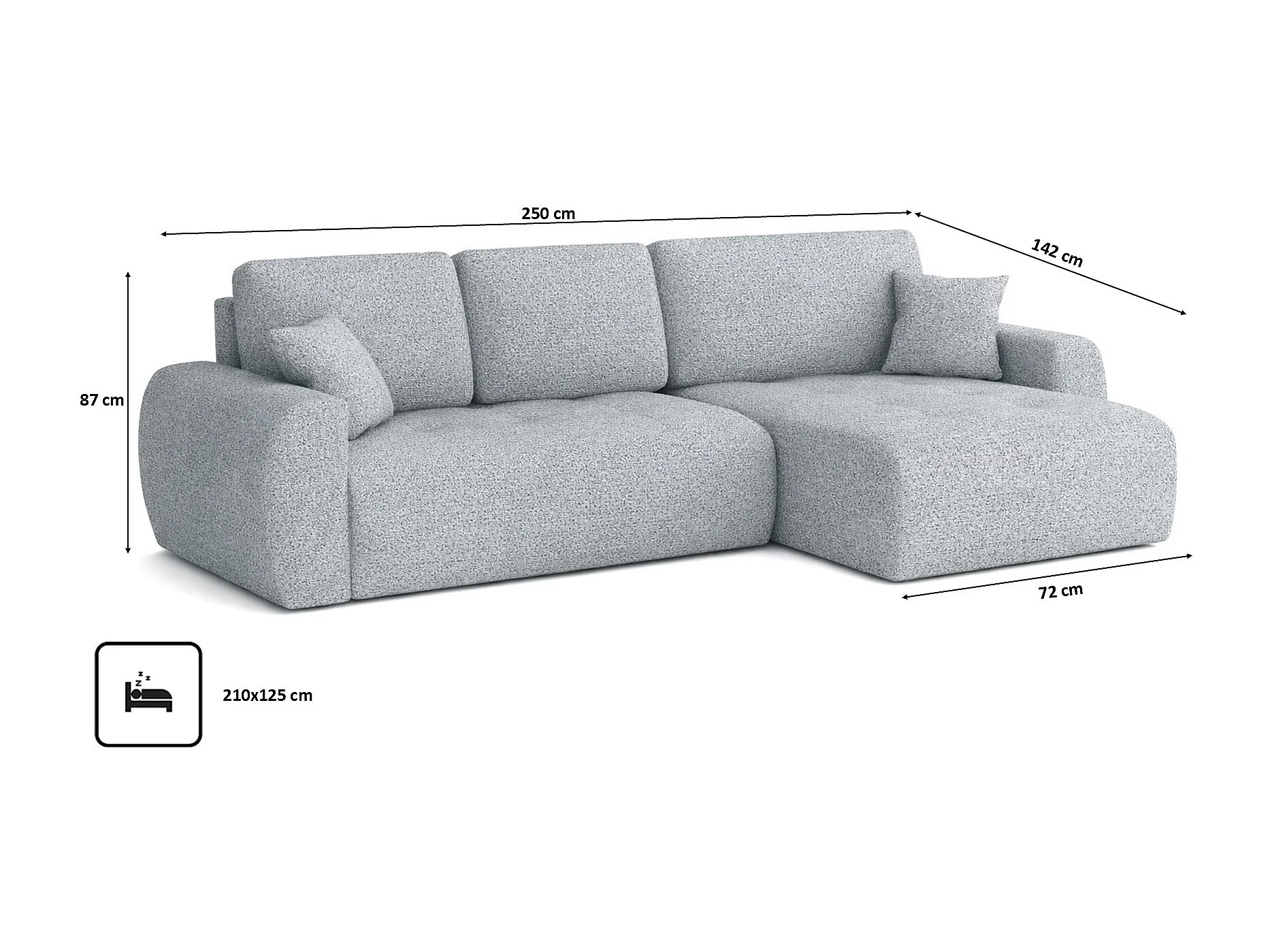 Divano angolare con funzione letto e contenitore a forma di L Ivo L, tessuto chenille Artico, Cement, Destra