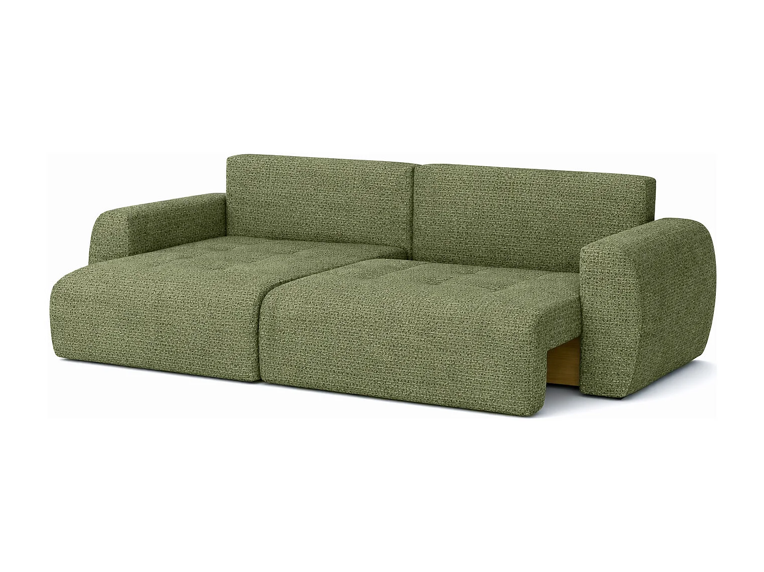 Divano angolare con funzione letto e contenitore a forma di L Ivo L, tessuto chenille Artico, Moss, Sinistra