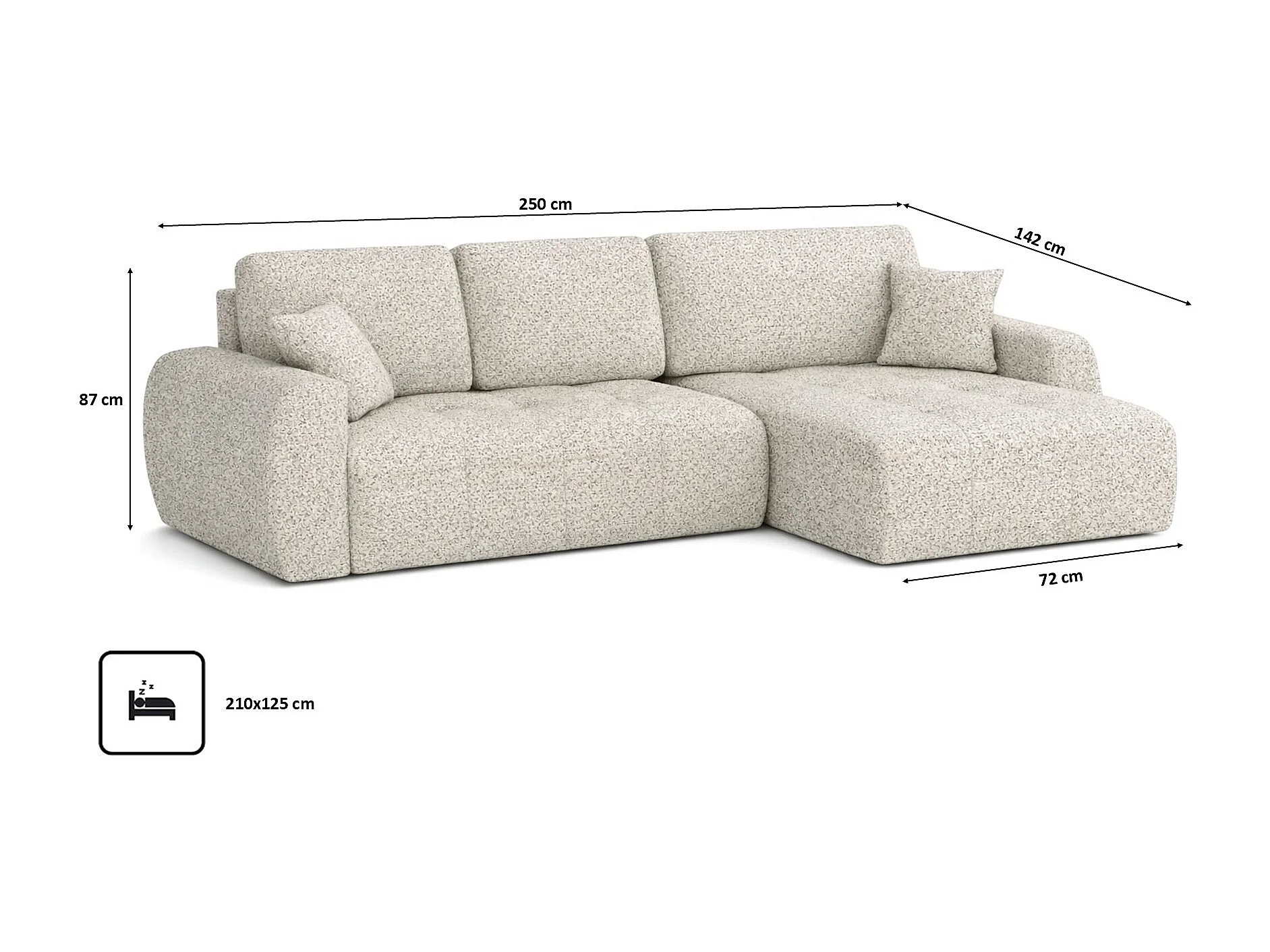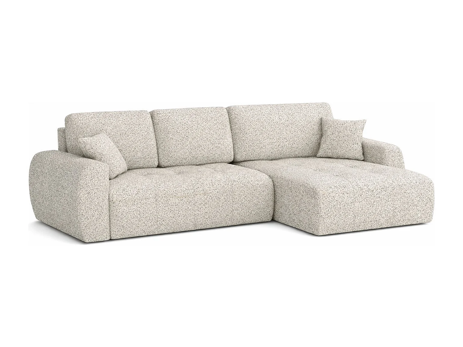 Divano angolare con funzione letto e contenitore a forma di L Ivo L, tessuto chenille Artico, Nata, Destra