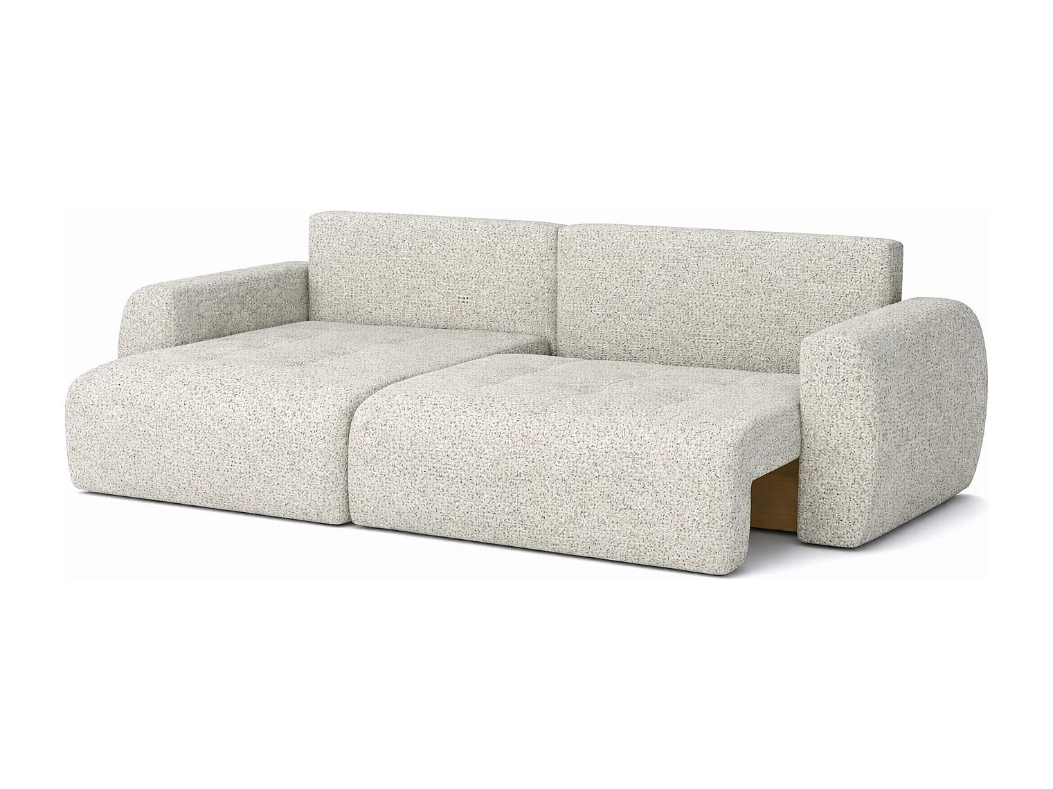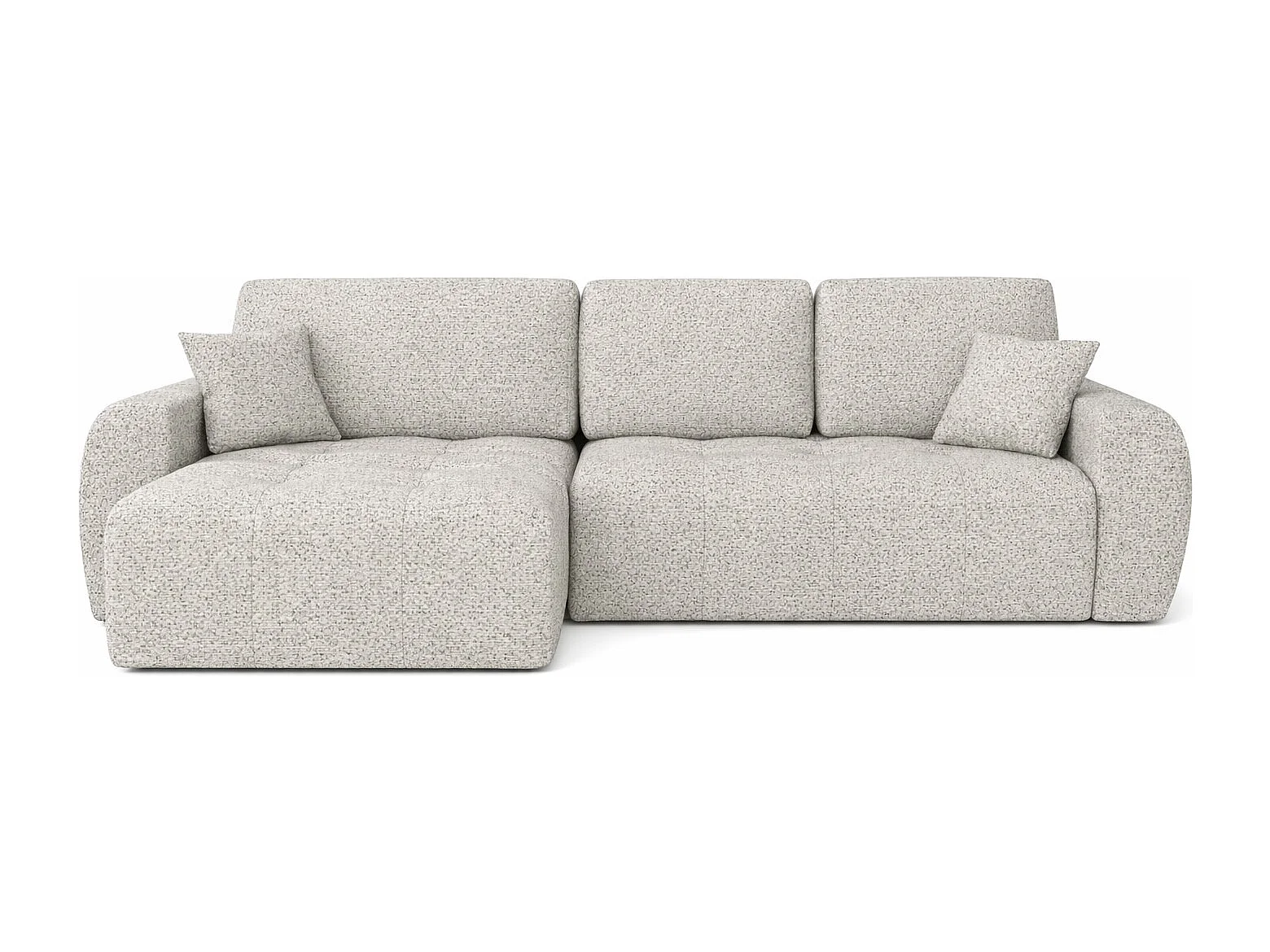 Divano angolare con funzione letto e contenitore a forma di L Ivo L, tessuto chenille Artico, Nata, Sinistra