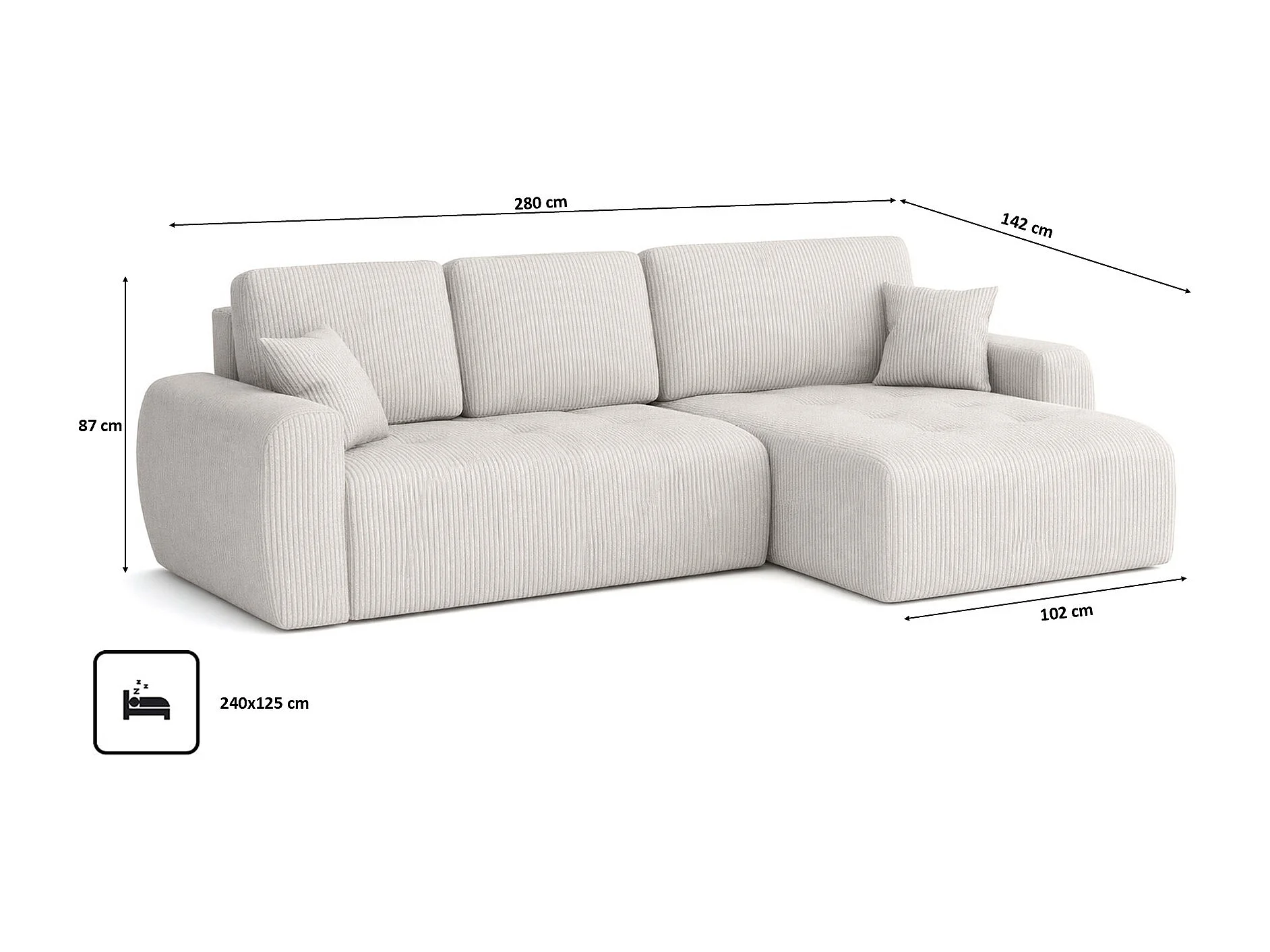 Divano angolare con funzione letto e contenitore a forma di L Ivo XL, tessuto a coste Poso, Beige, Destra