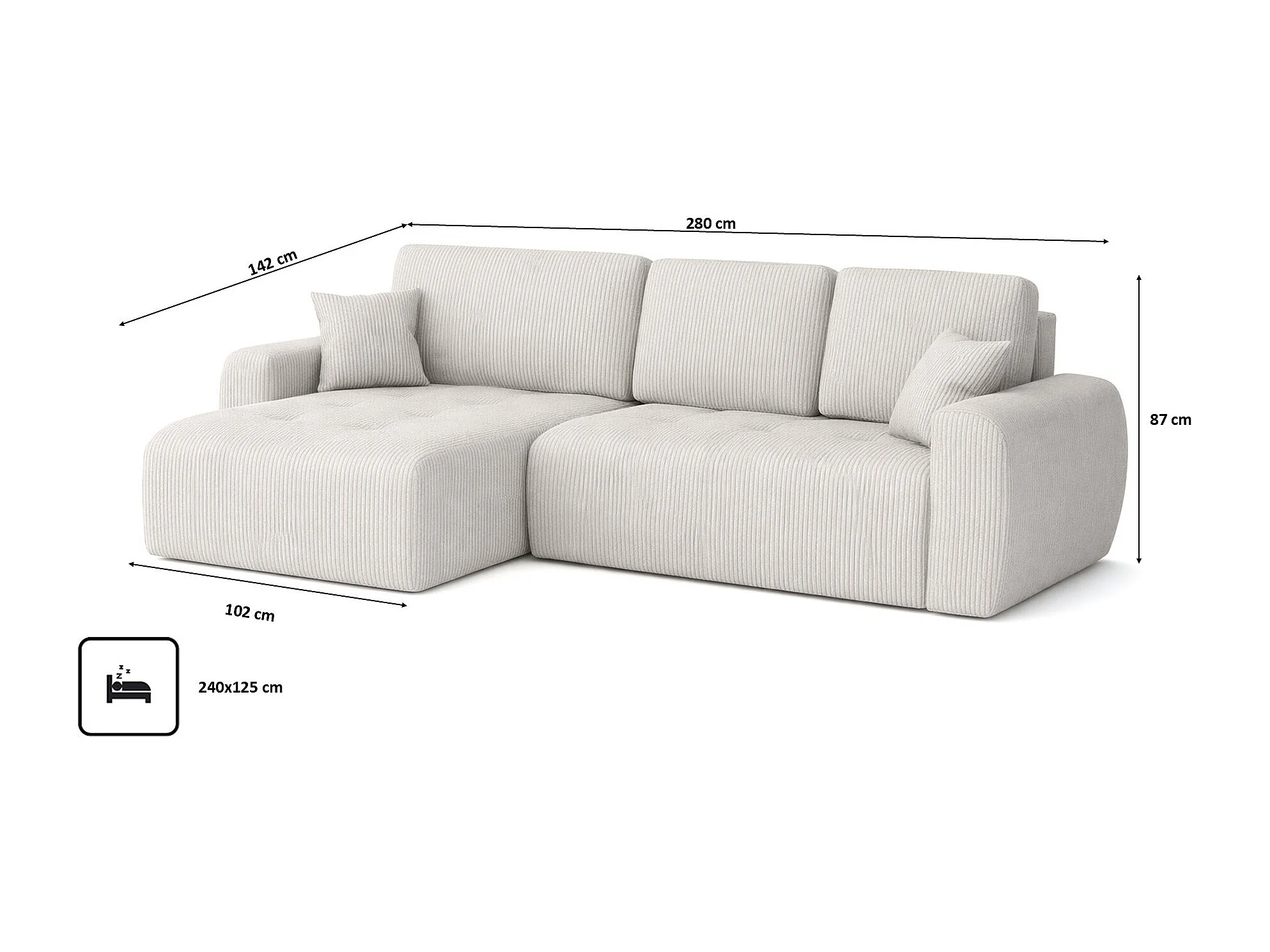 Divano angolare con funzione letto e contenitore a forma di L Ivo XL, tessuto a coste Poso, Beige, Sinistra