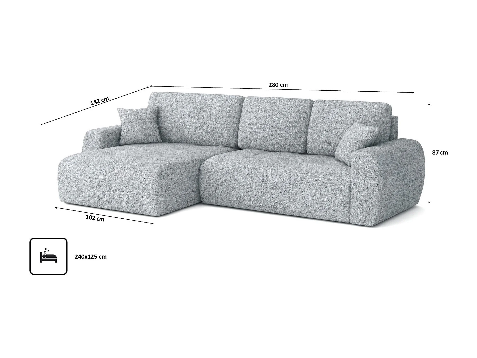 Divano angolare con funzione letto e contenitore a forma di L Ivo XL, tessuto chenille Artico, Cement, Sinistra
