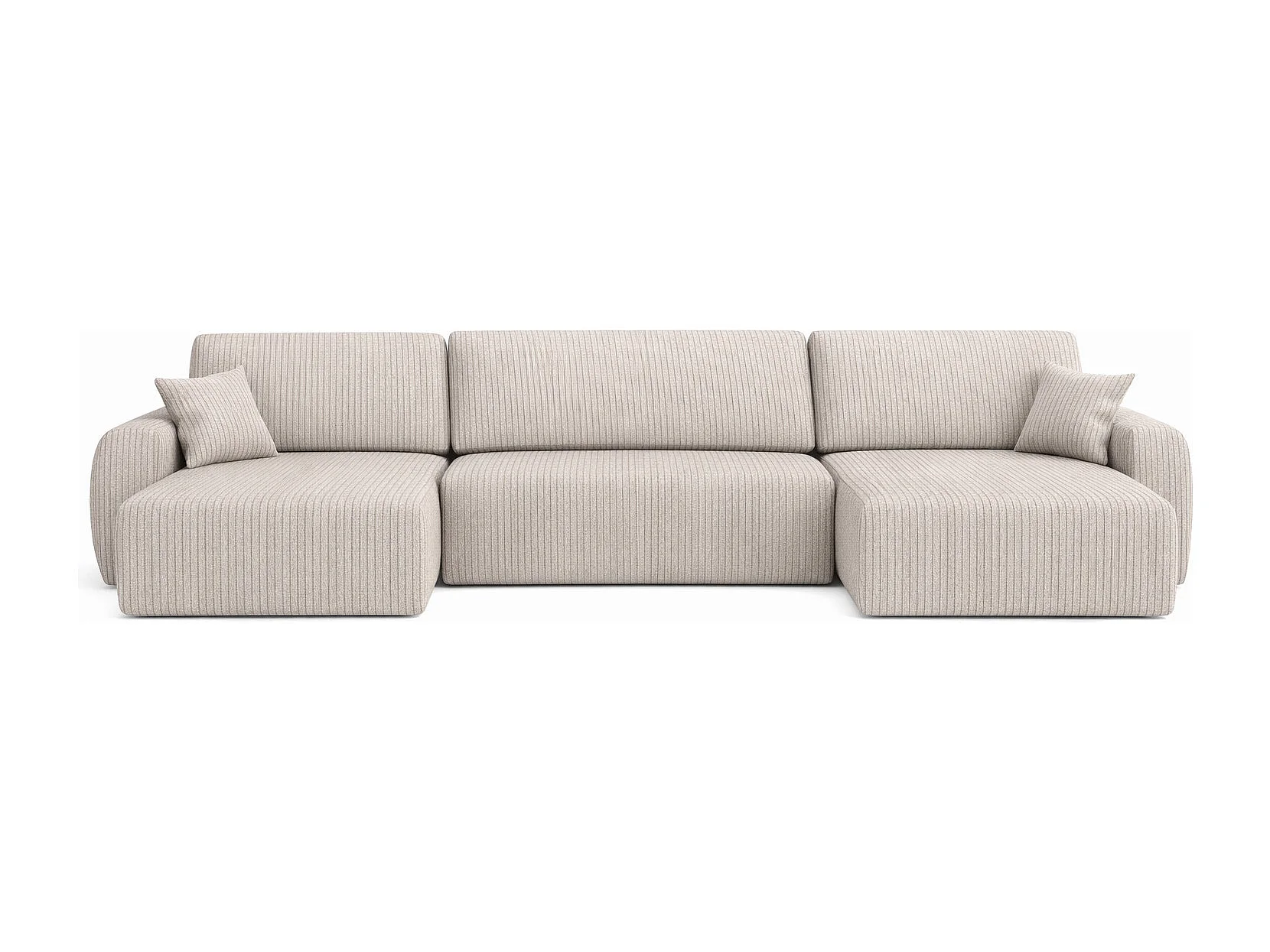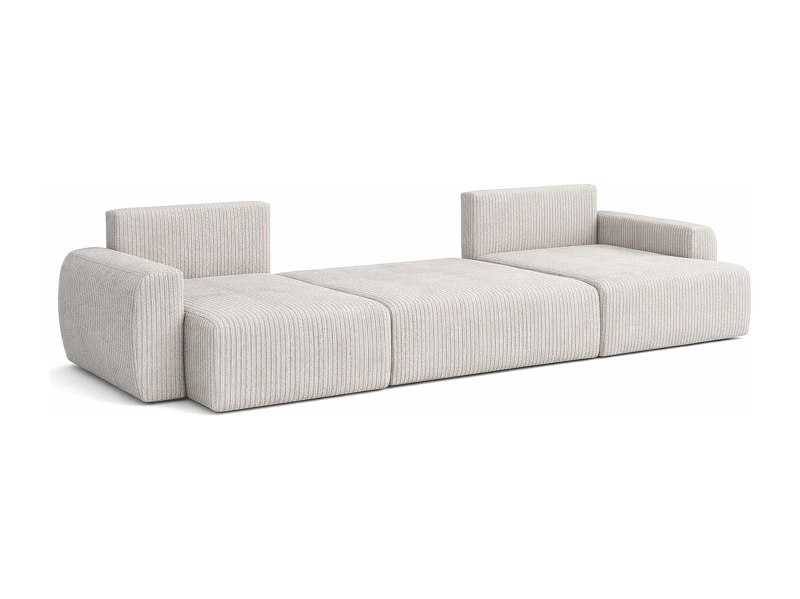 Divano angolare con funzione letto e contenitore a U Ariel U, tessuto a coste Poso, Beige