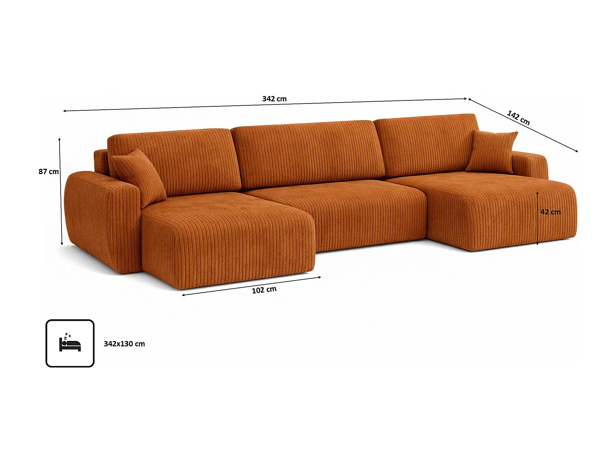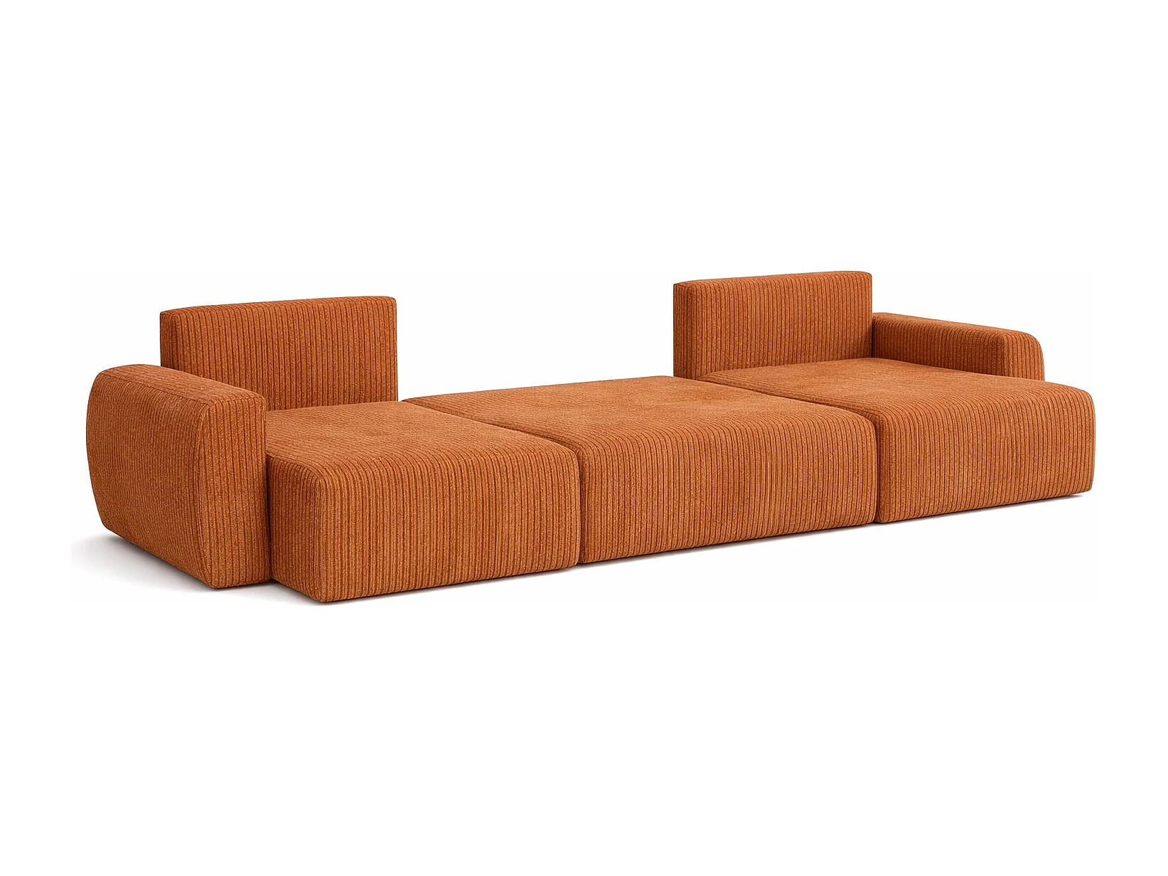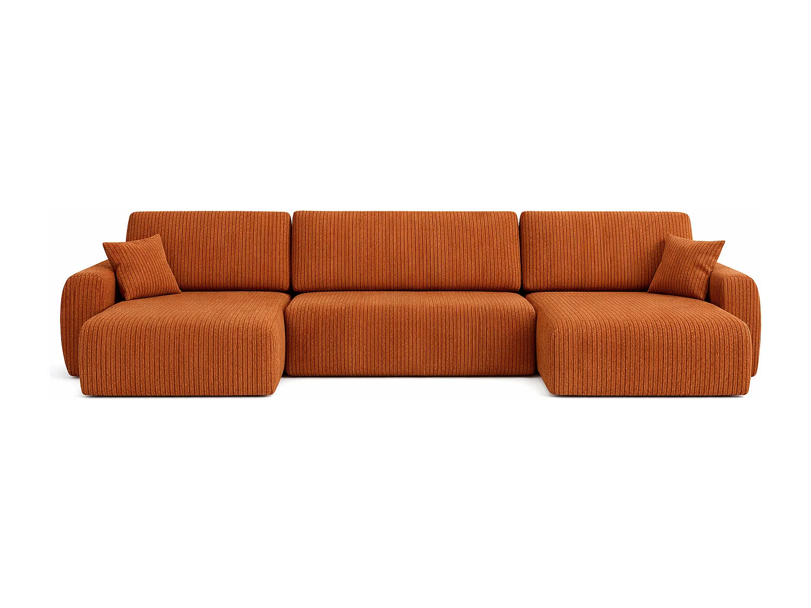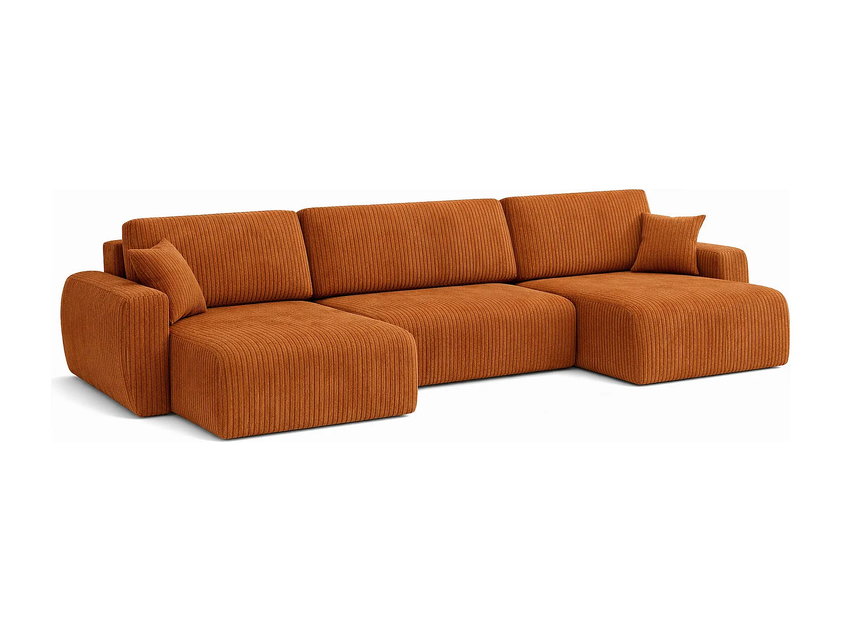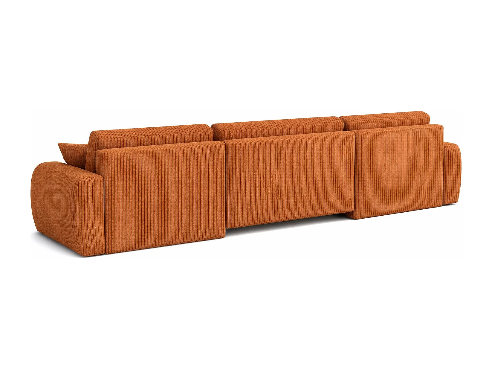 Divano angolare con funzione letto e contenitore a U Ariel U, tessuto a coste Poso, Rame