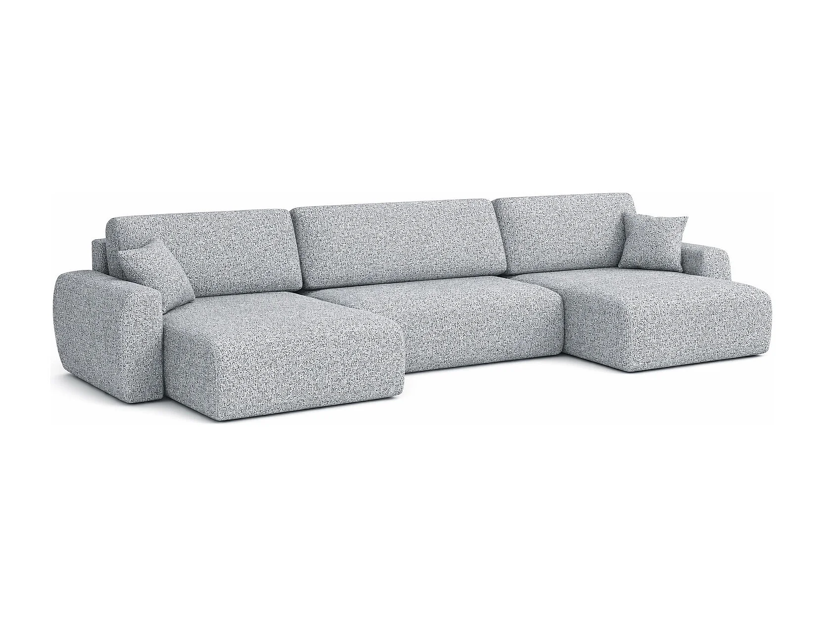 Divano angolare con funzione letto e contenitore a U Ariel U, tessuto chenille Artico, Cemento