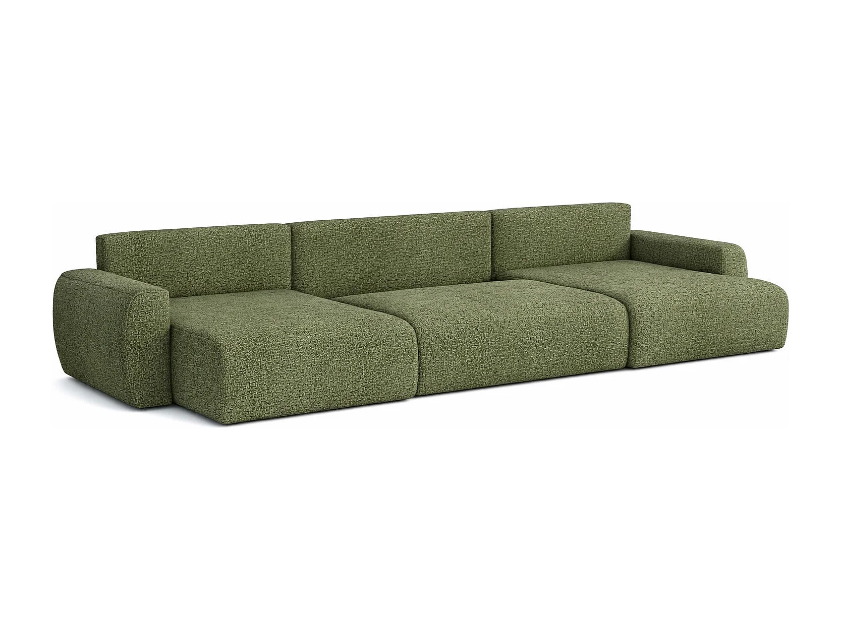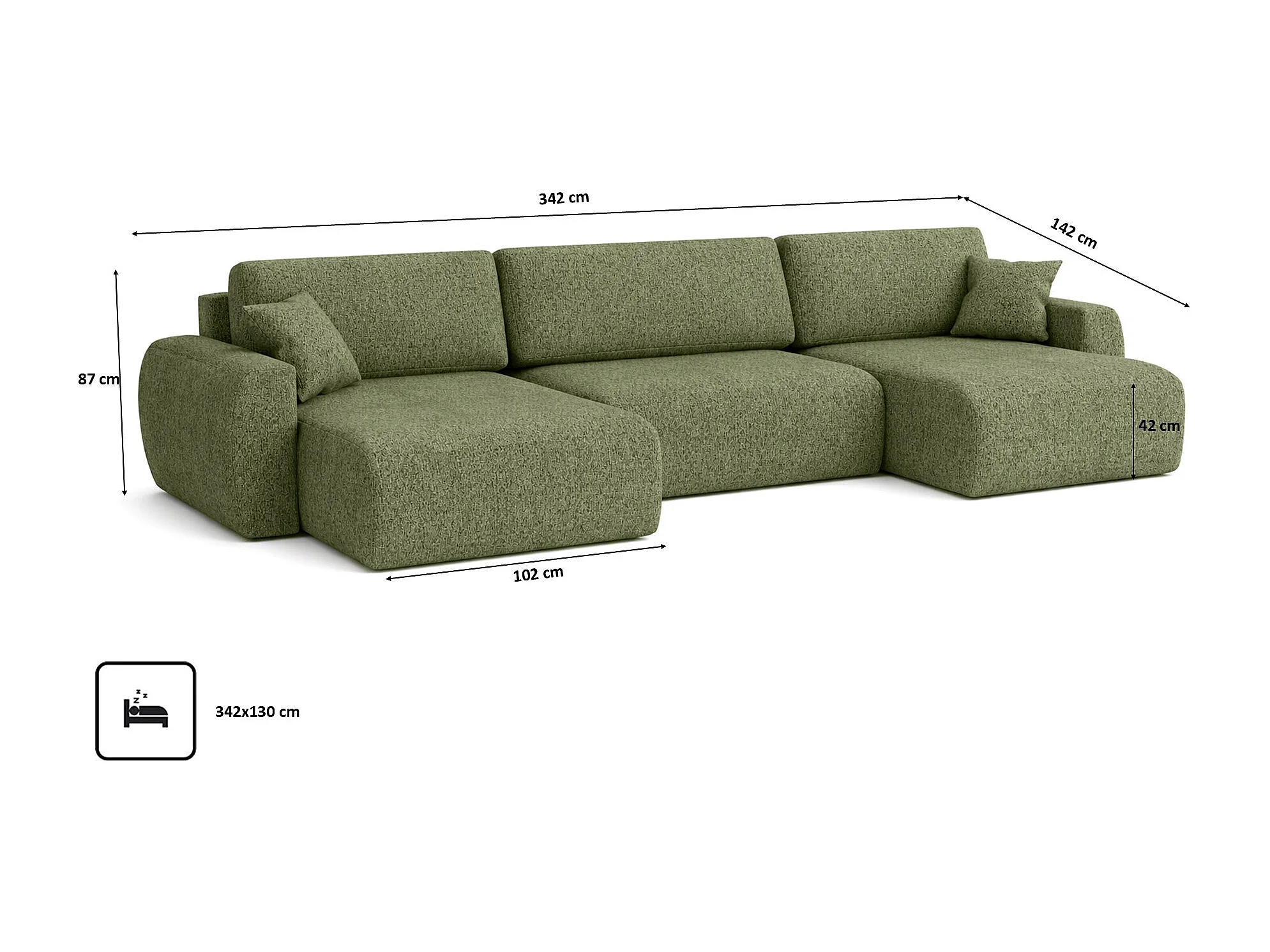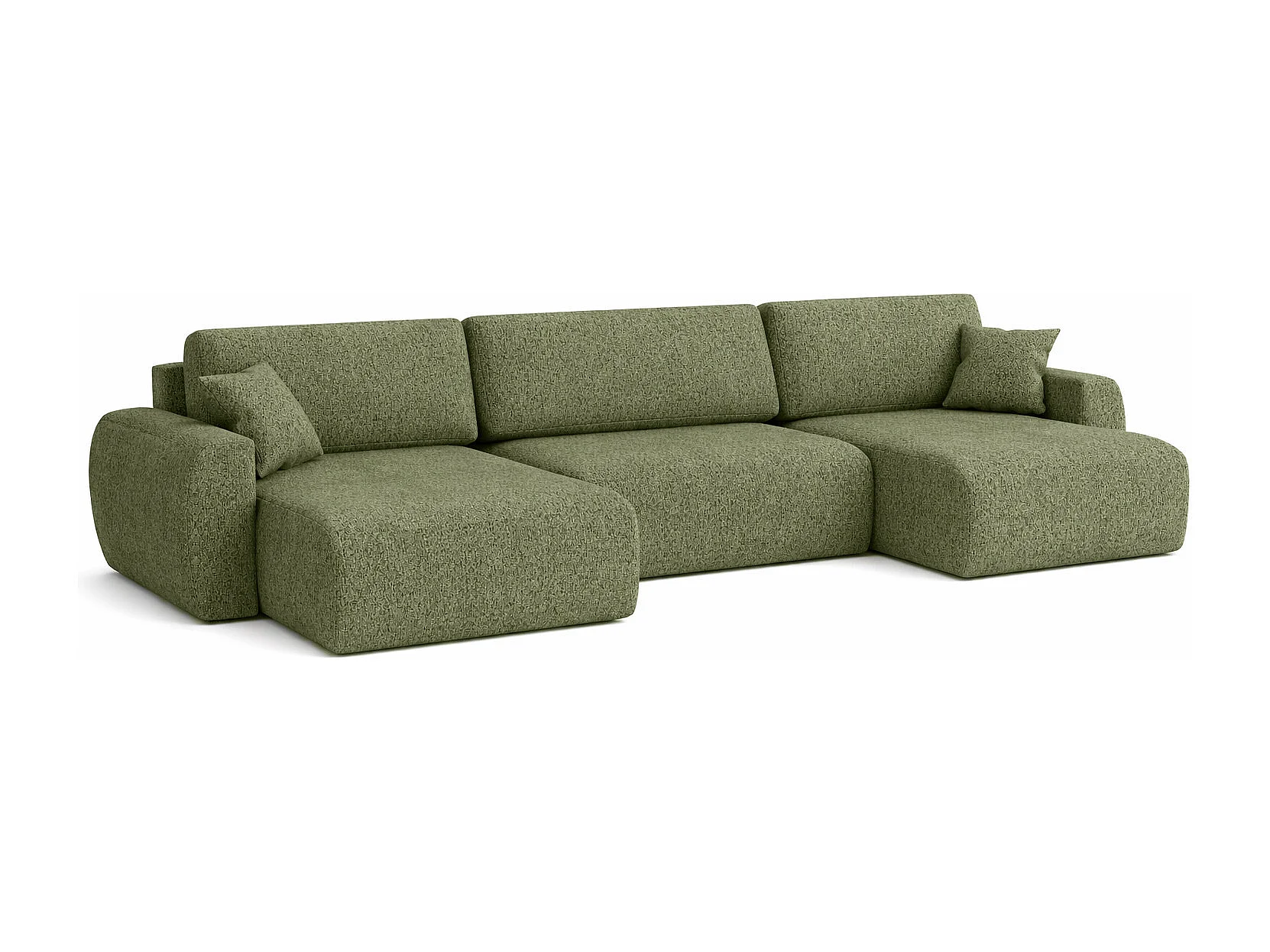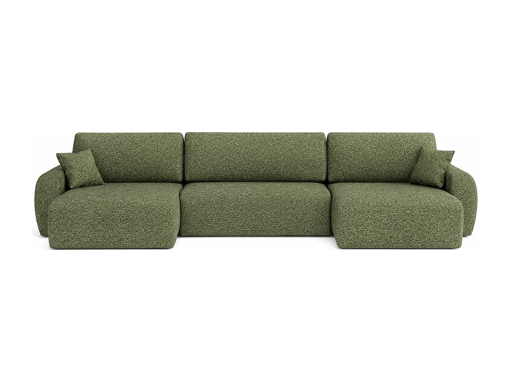 Divano angolare con funzione letto e contenitore a U Ariel U, tessuto chenille Artico, Muschio