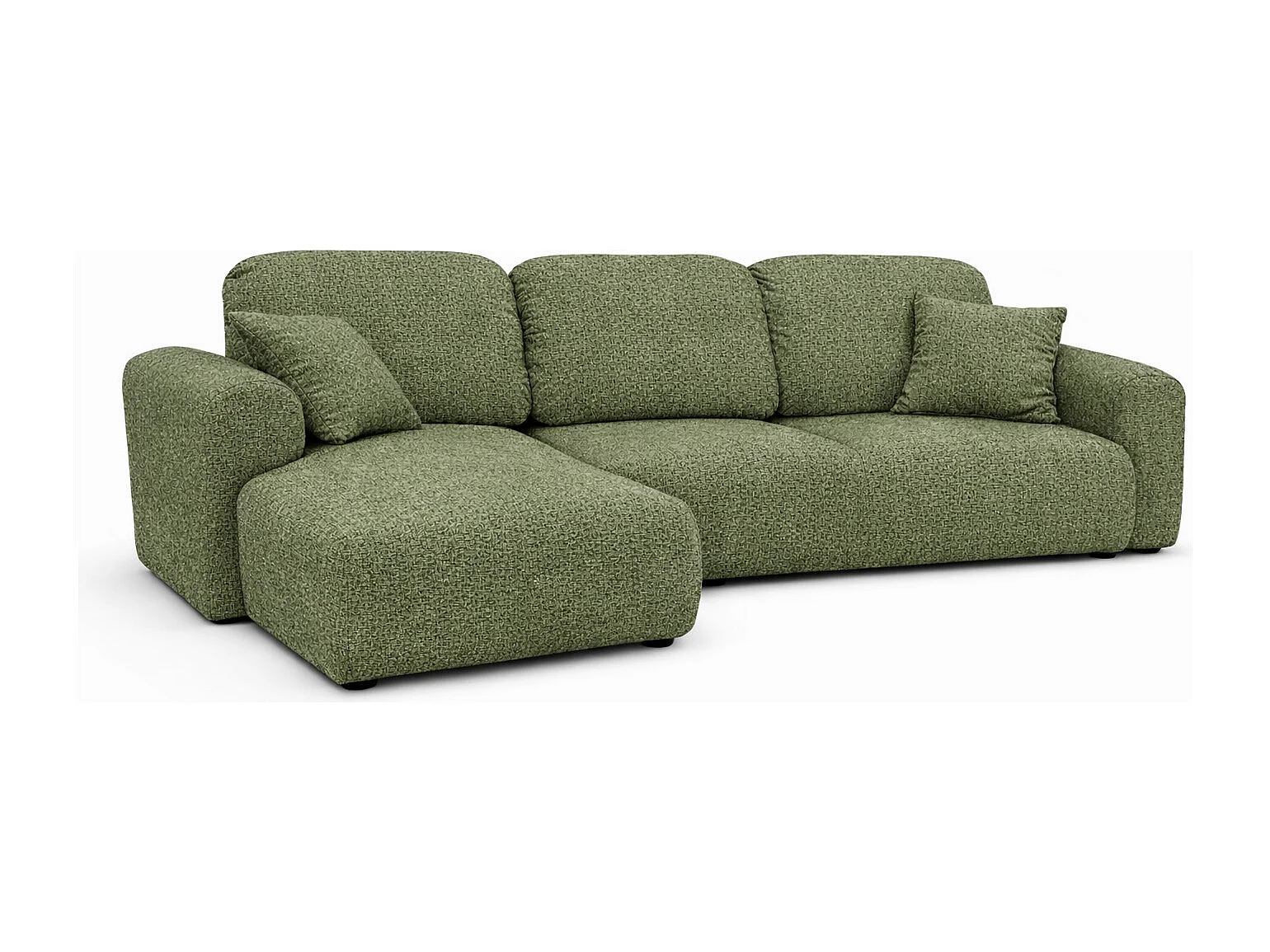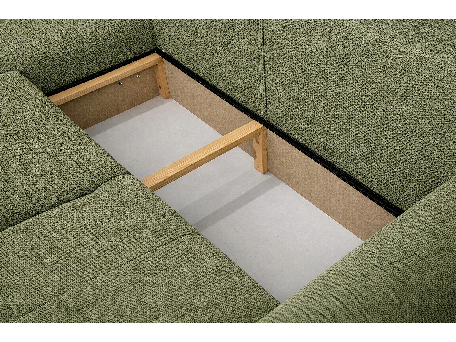 Divano angolare con funzione letto e contenitore, Divano a L Bingo L, tessuto chenille Artico, Muschio, Sinistra