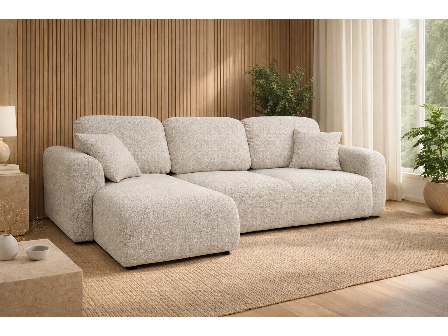Divano angolare con funzione letto e contenitore, Divano a L Bingo L, tessuto chenille Artico, Nata, Sinistra