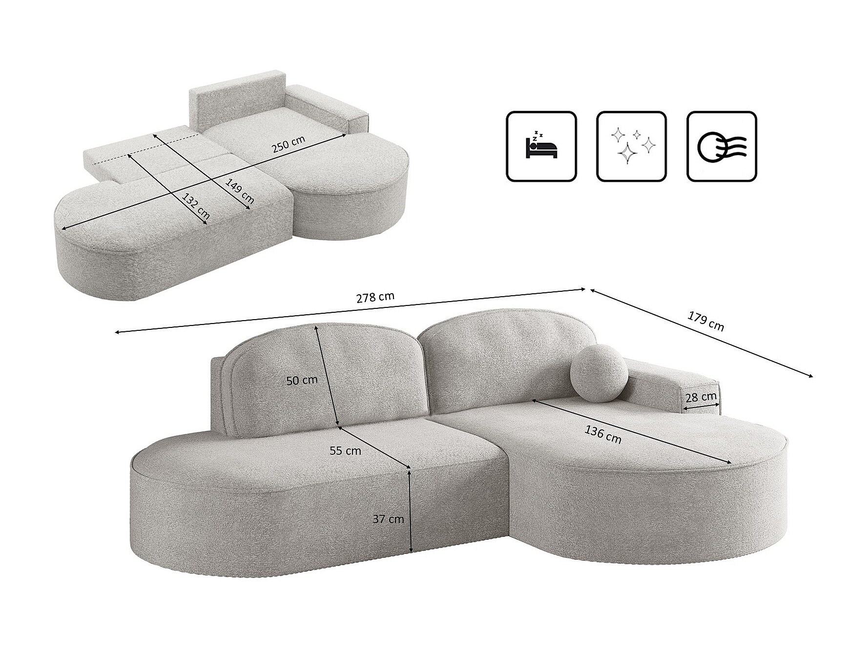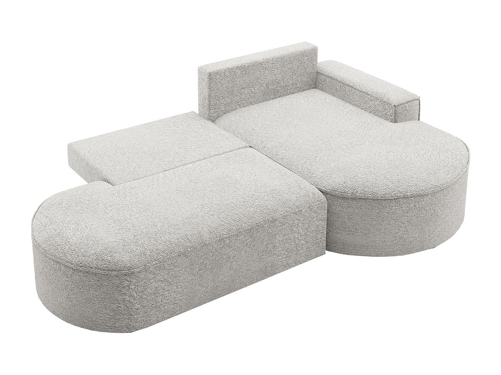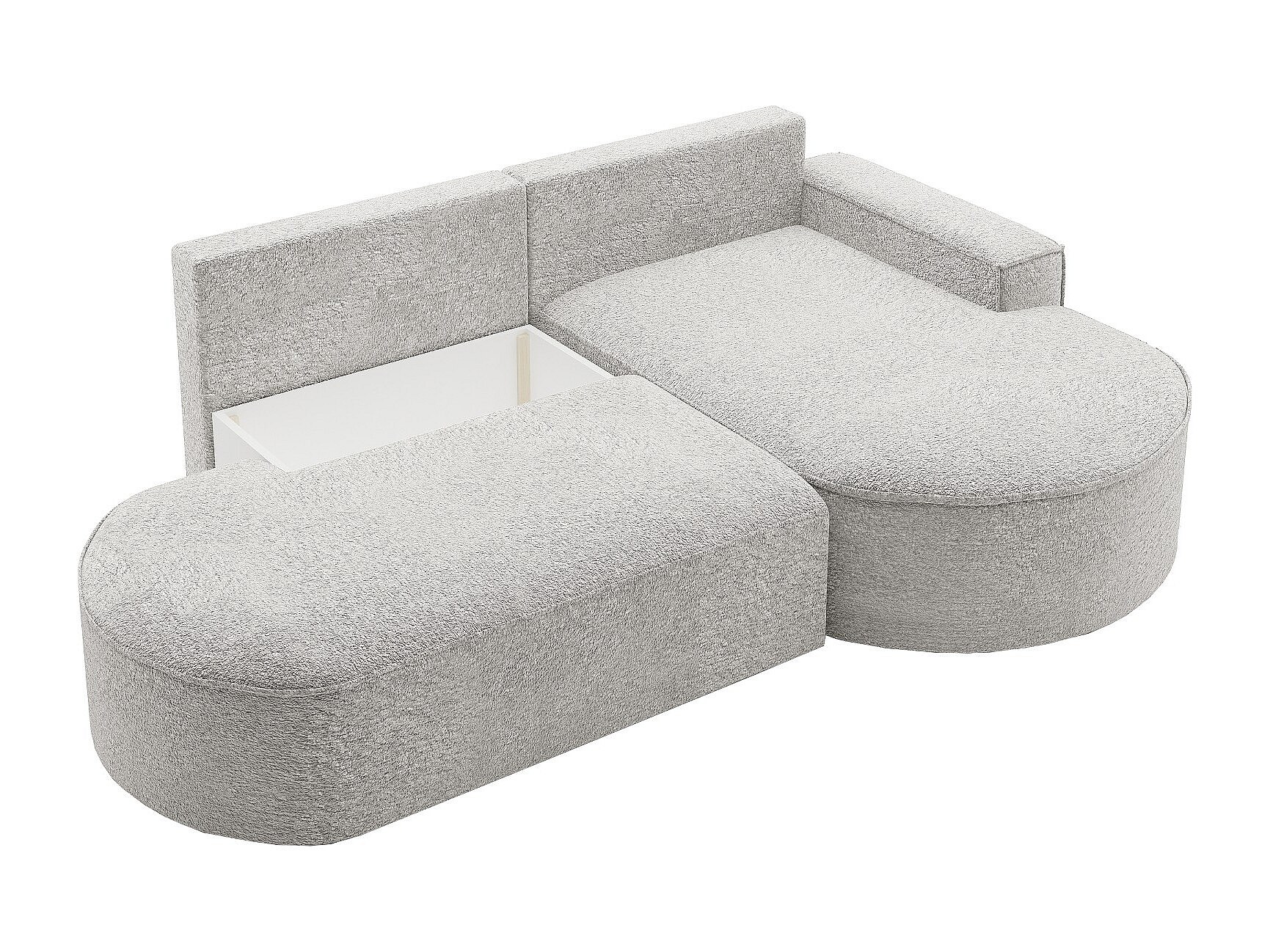 Divano angolare con funzione letto e contenitore Modena Round tessuto Arena Grigio Chiaro Destra