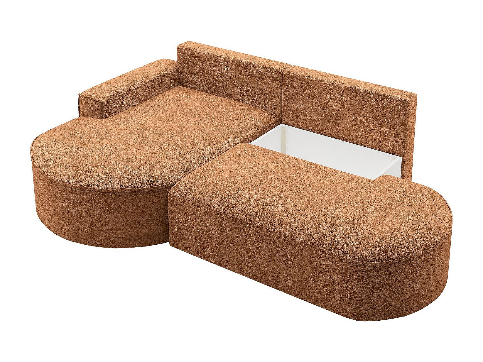 Divano angolare con funzione letto e contenitore Modena Round tessuto Arena Orange Left