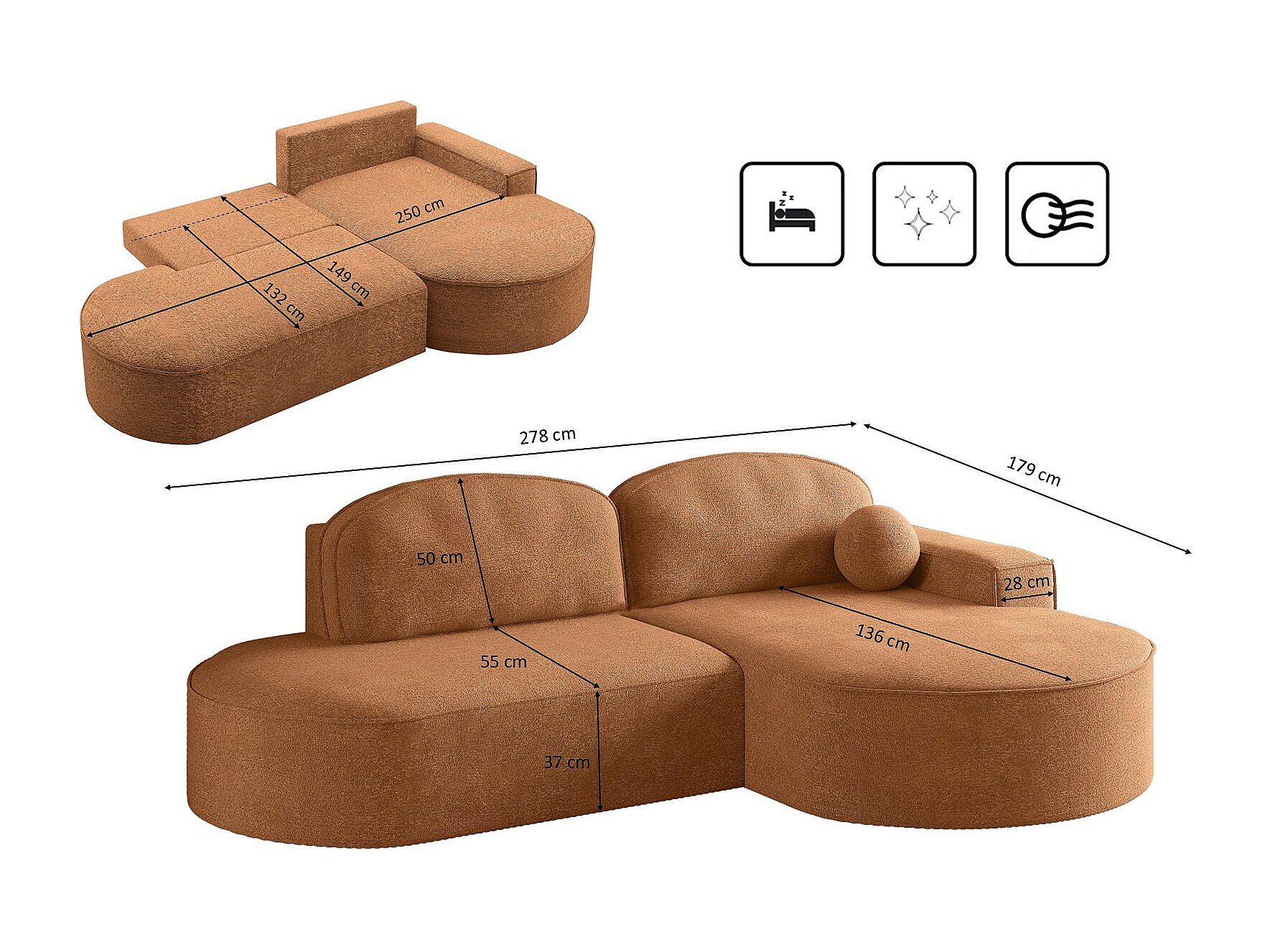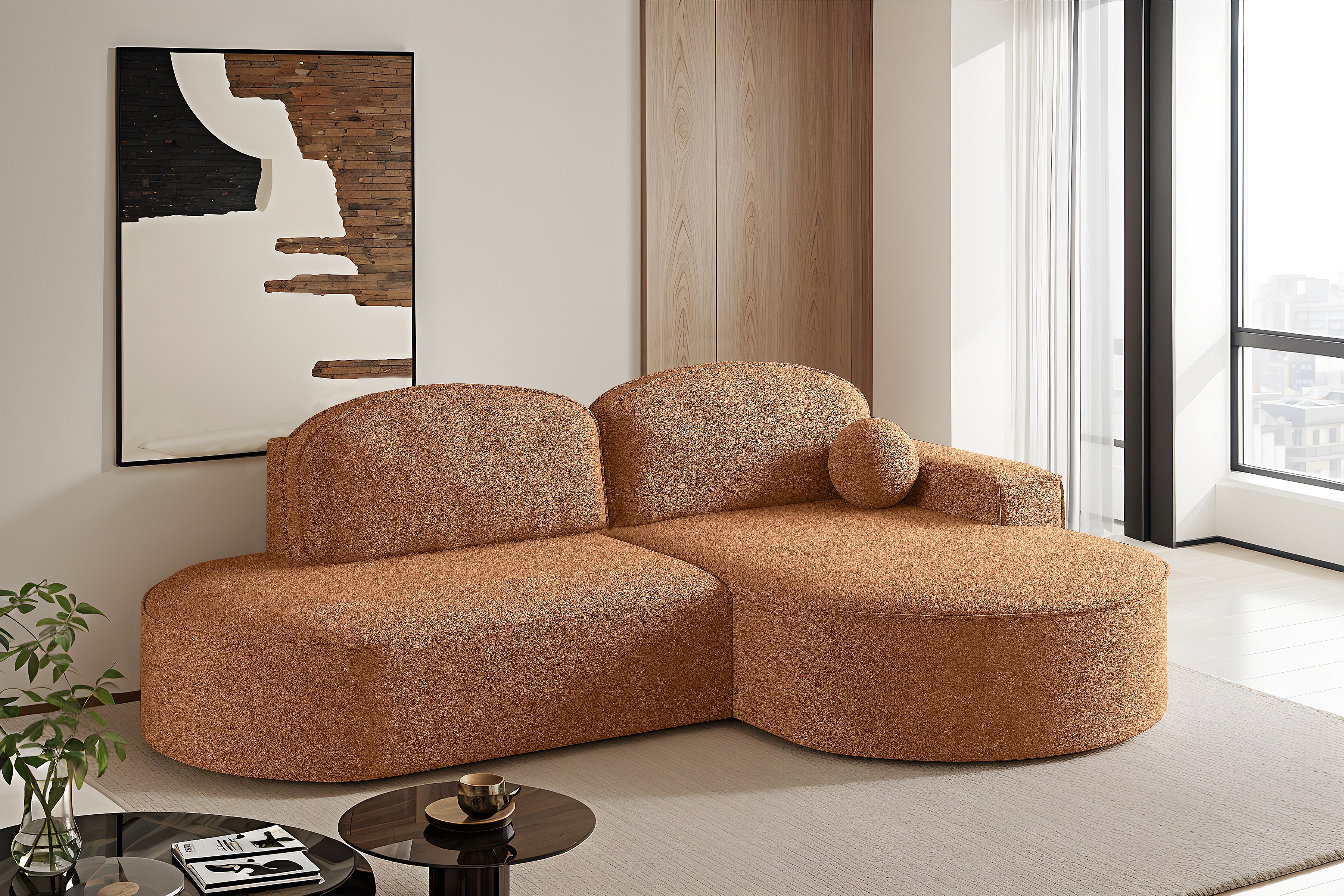 Divano angolare con funzione letto e contenitore Modena Round tessuto Arena Orange Right
