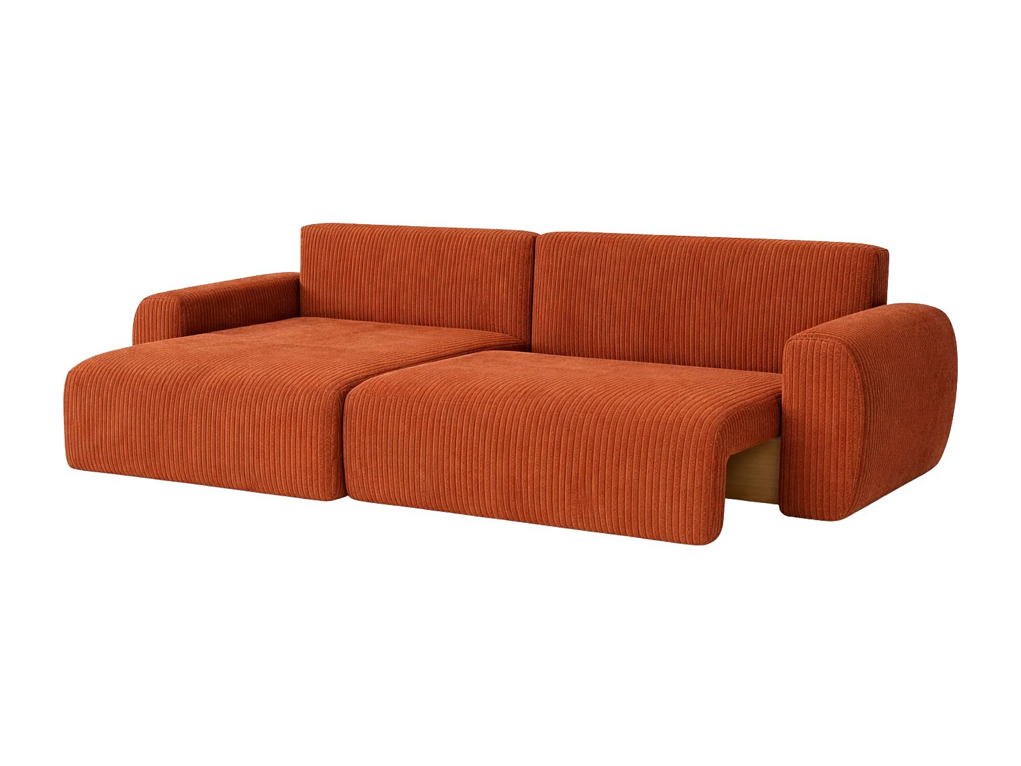 Divano angolare con funzione letto e vano contenitore, Ariel XL, tessuto velluto a coste, tessuto Poso, rame, lato sinistro
