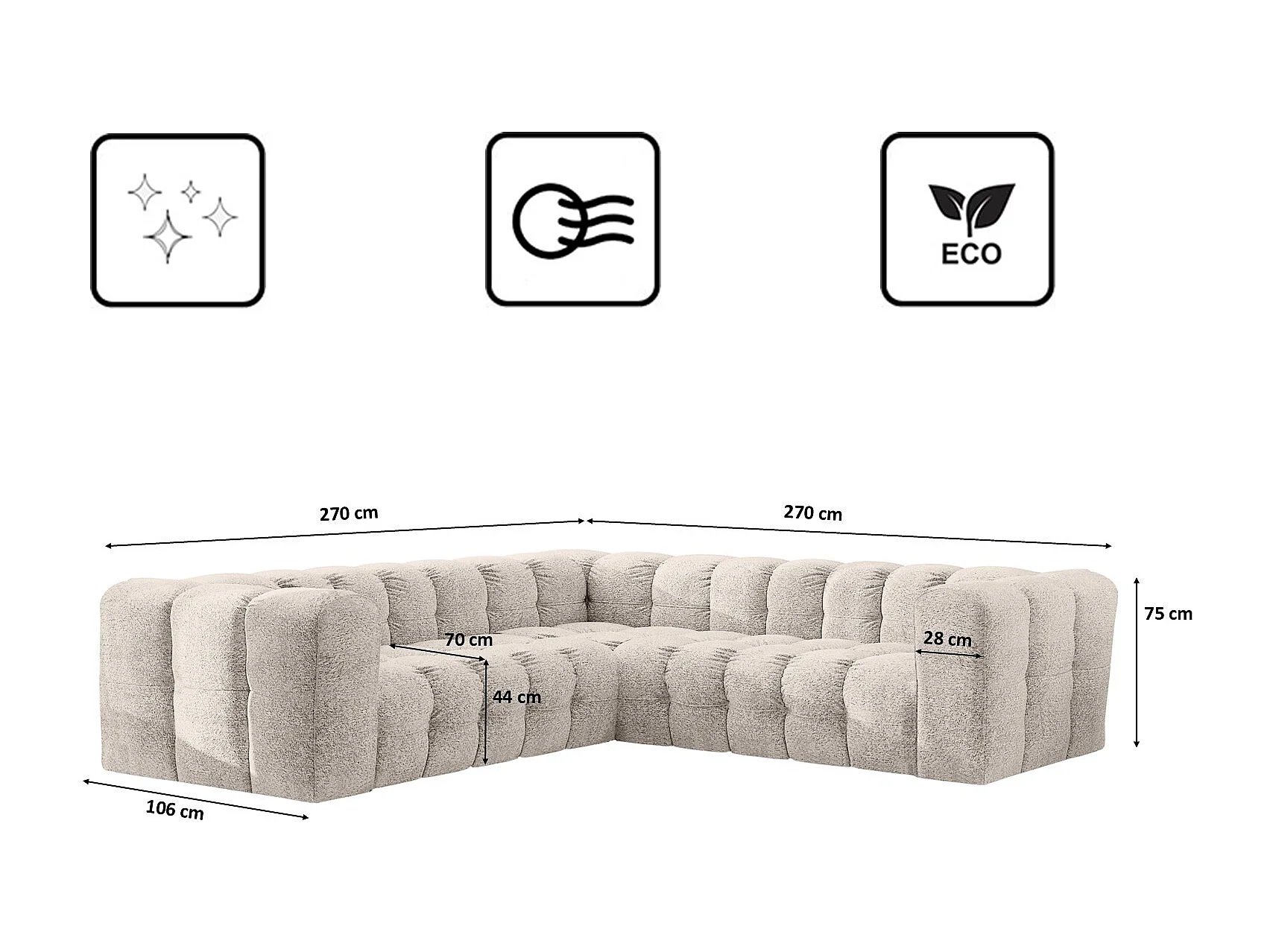 Divano angolare corner con impunture BALOO, tessuto chenille Arena, Ecrù
