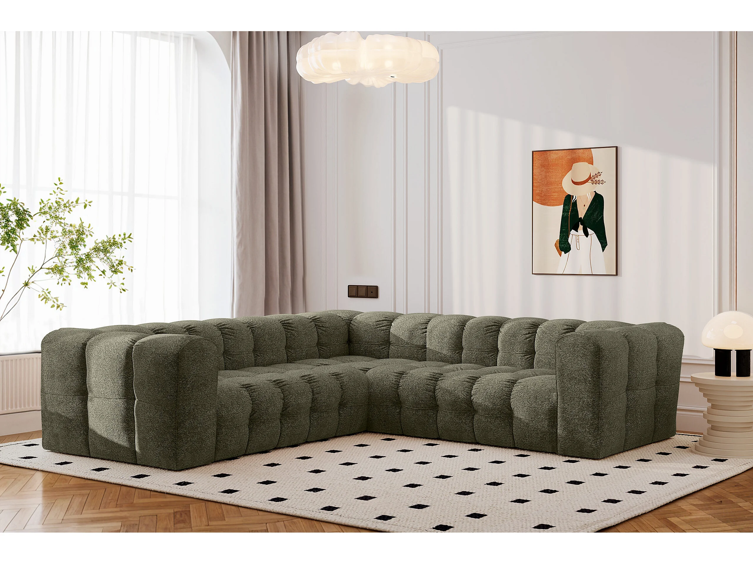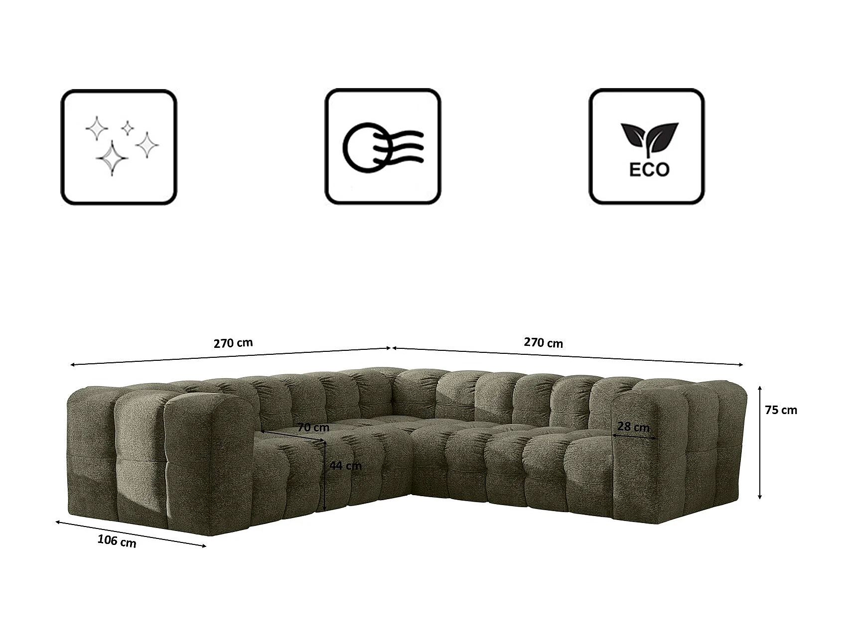 Divano angolare corner con impunture BALOO, tessuto chenille Arena, Verde