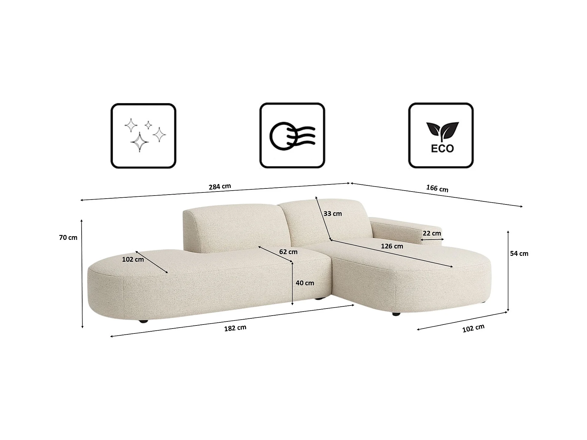 Divano angolare Cursal Atelier, tessuto Artico, Nata, a destra