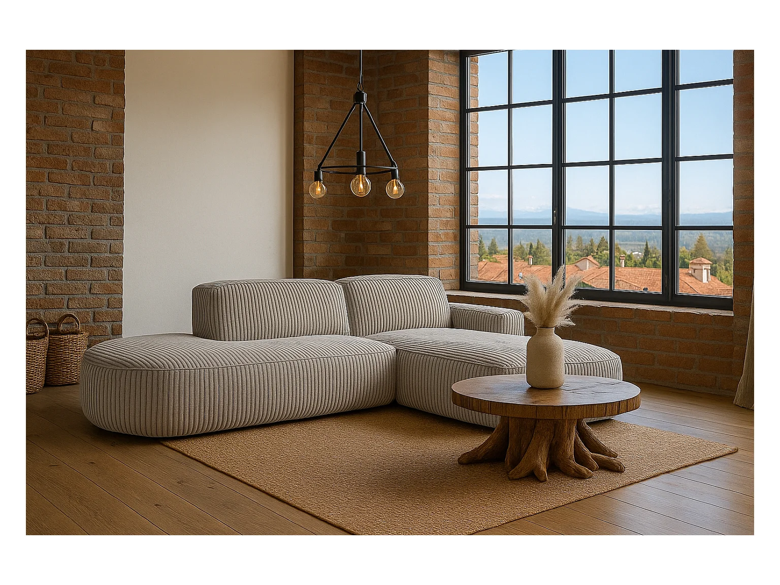 Divano angolare Cursal Atelier, tessuto Poso, beige scuro, destra