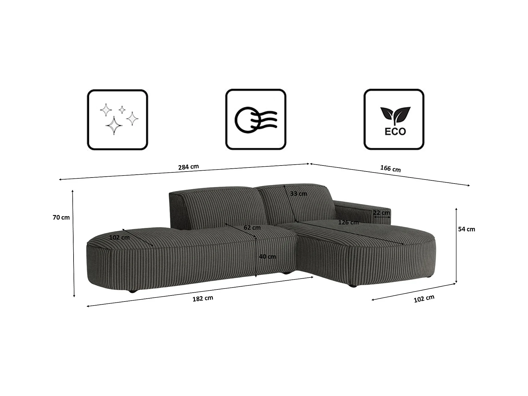 Divano angolare Cursal Atelier, tessuto Poso, grigio, destra