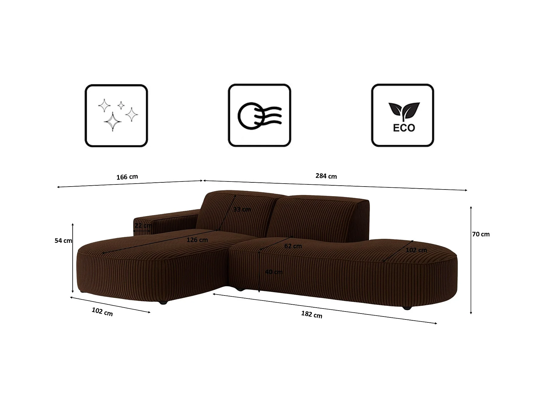Divano angolare Cursal Atelier, tessuto Poso, marrone, sinistro
