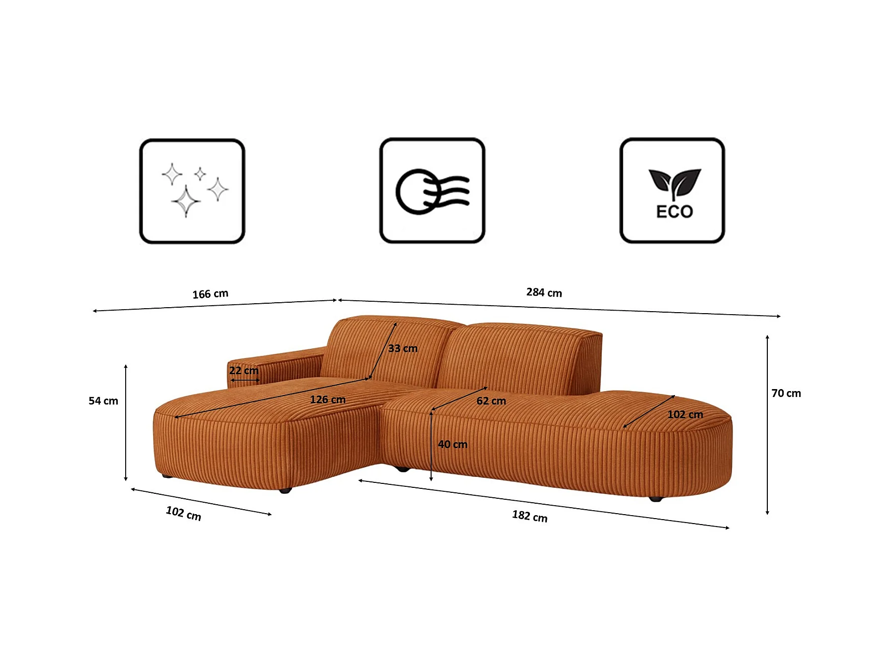 Divano angolare Cursal Atelier, tessuto Poso, rame, sinistro