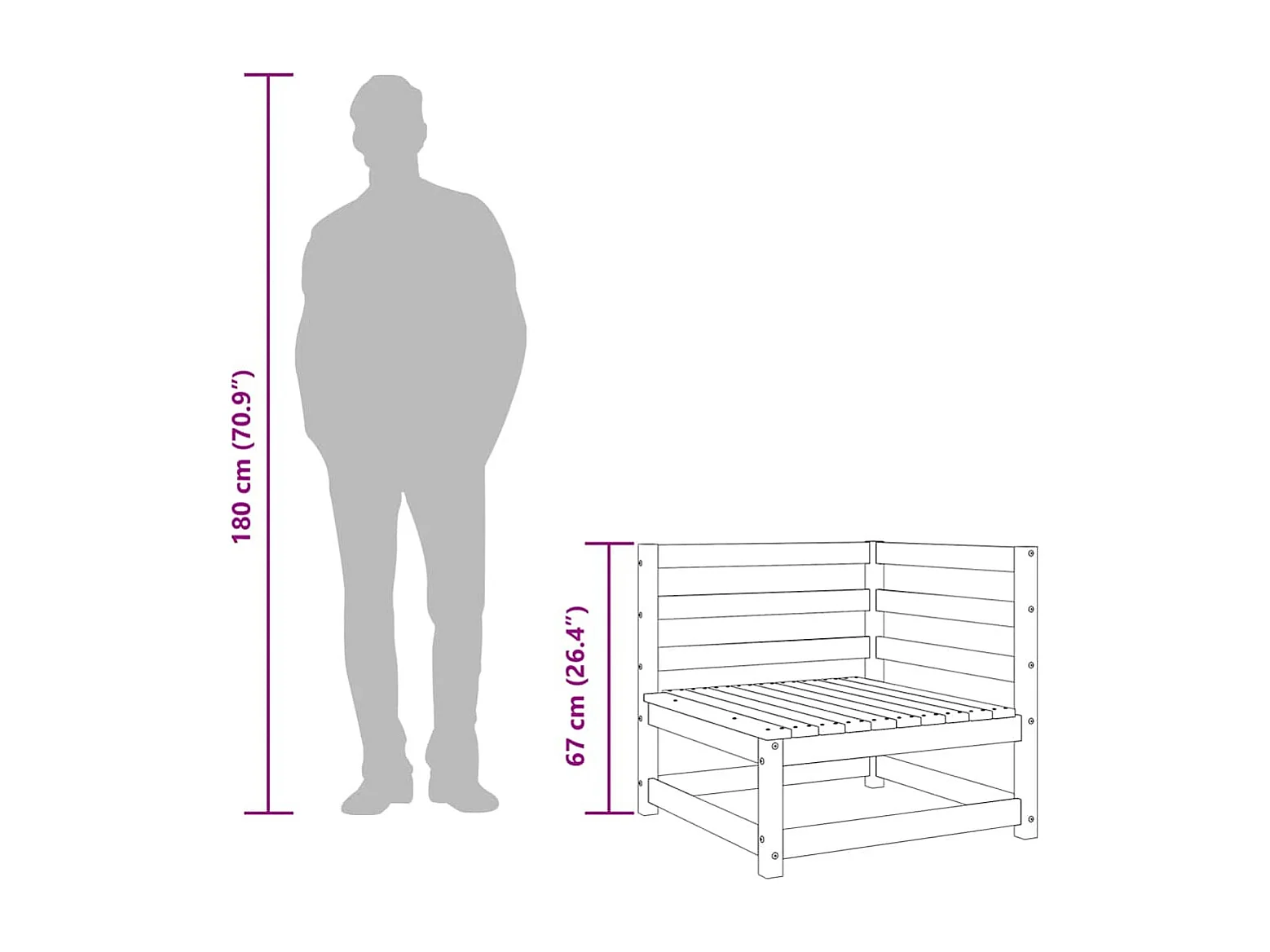 Divano Angolare da Giardino 70x70x67cm Legno Massello di Pino
