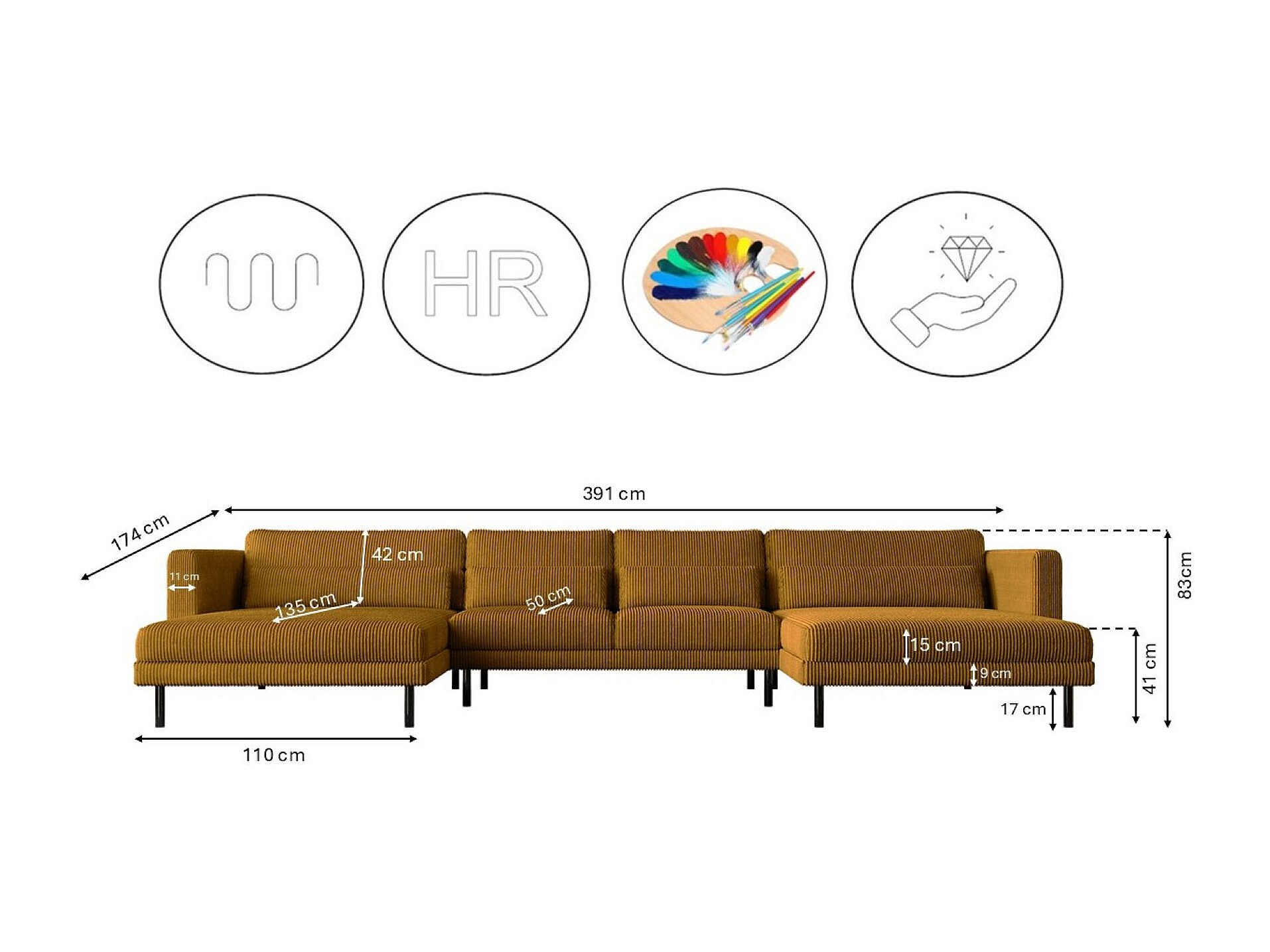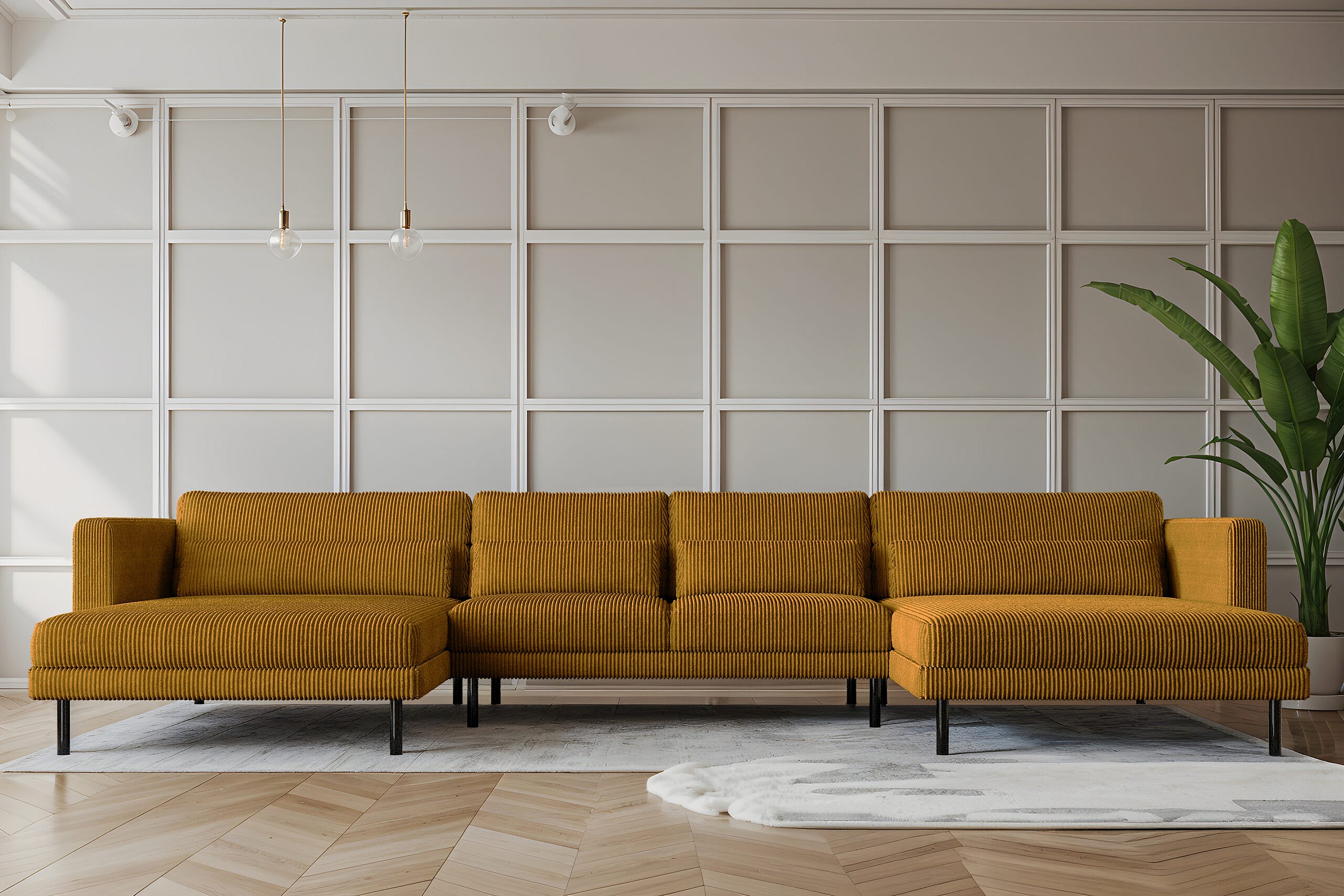 Divano angolare DANI a forma di U Tessuto elegante Poso color senape