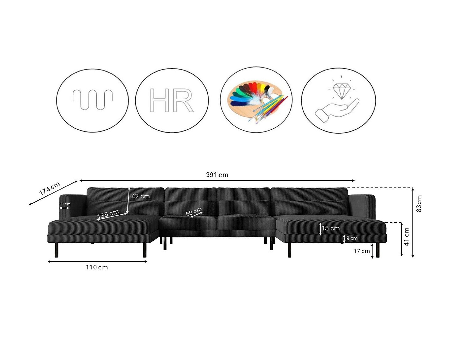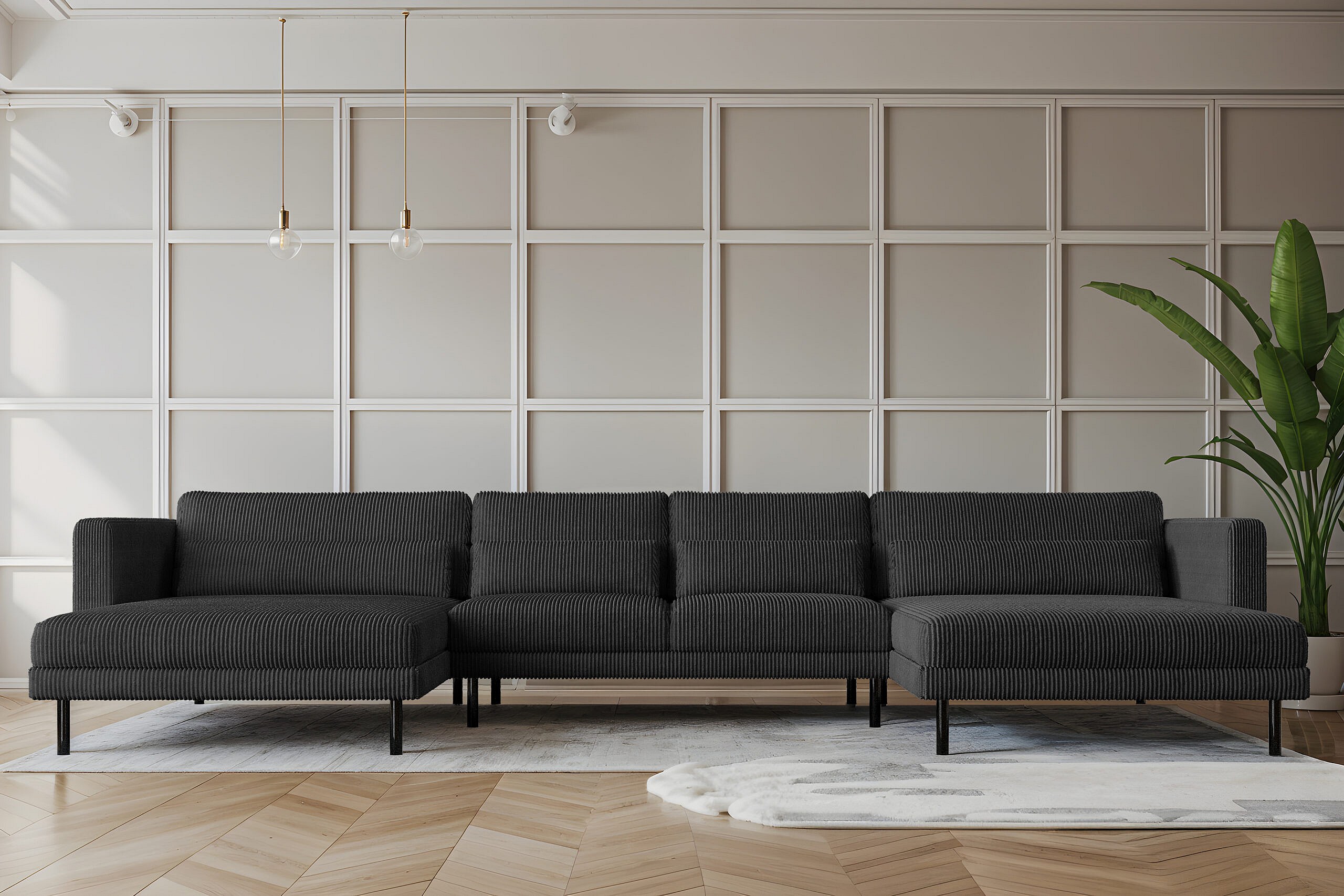 Divano angolare DANI a forma di U Tessuto elegante Poso Nero