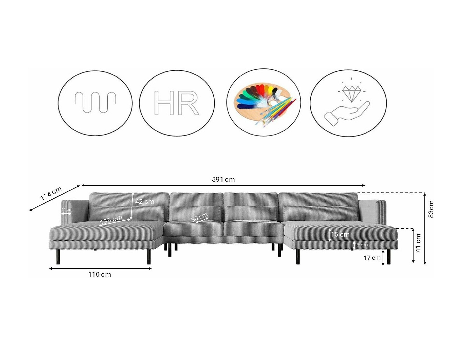 Divano angolare DANI a forma di U Tessuto elegante Poso Silver