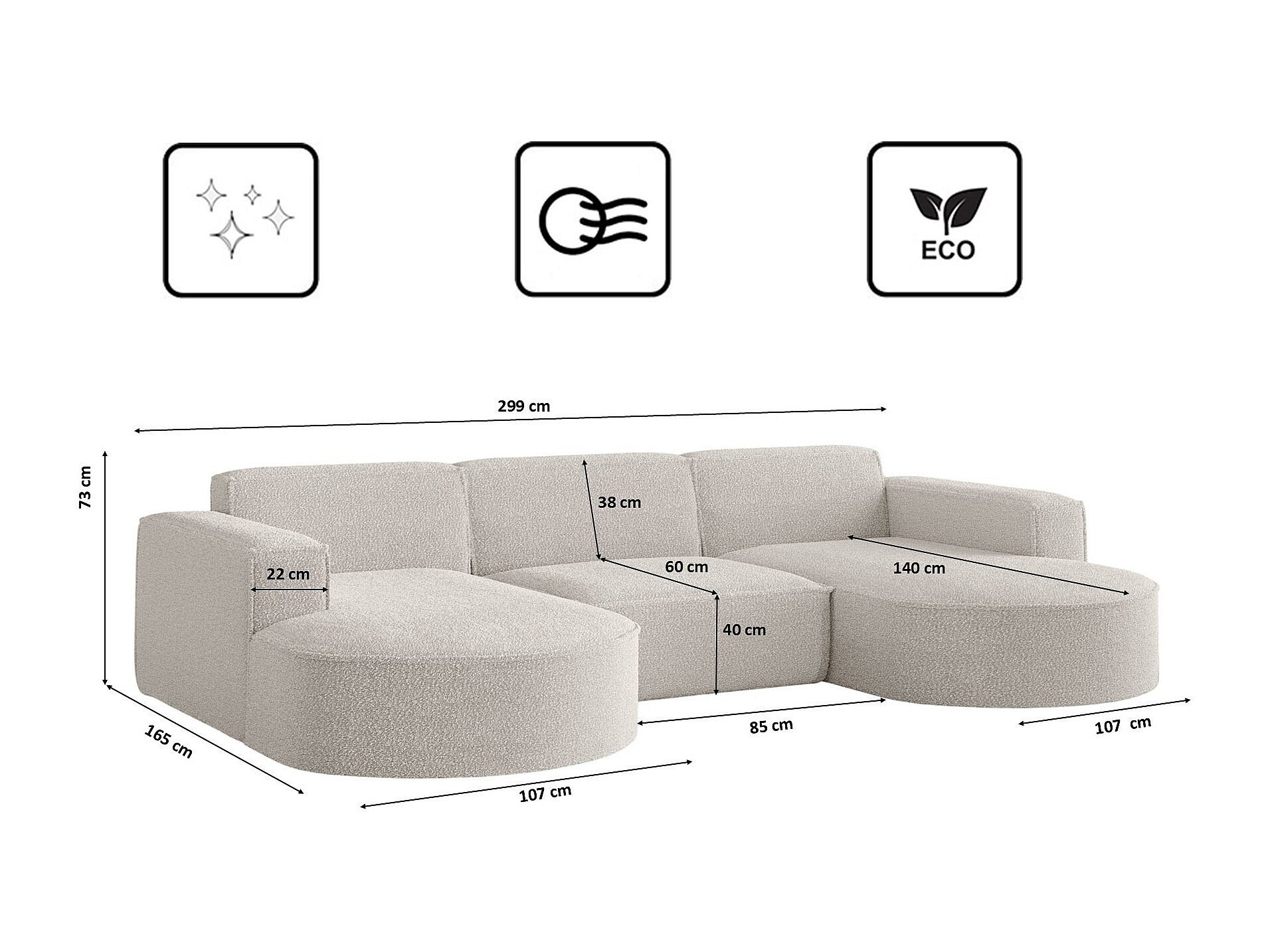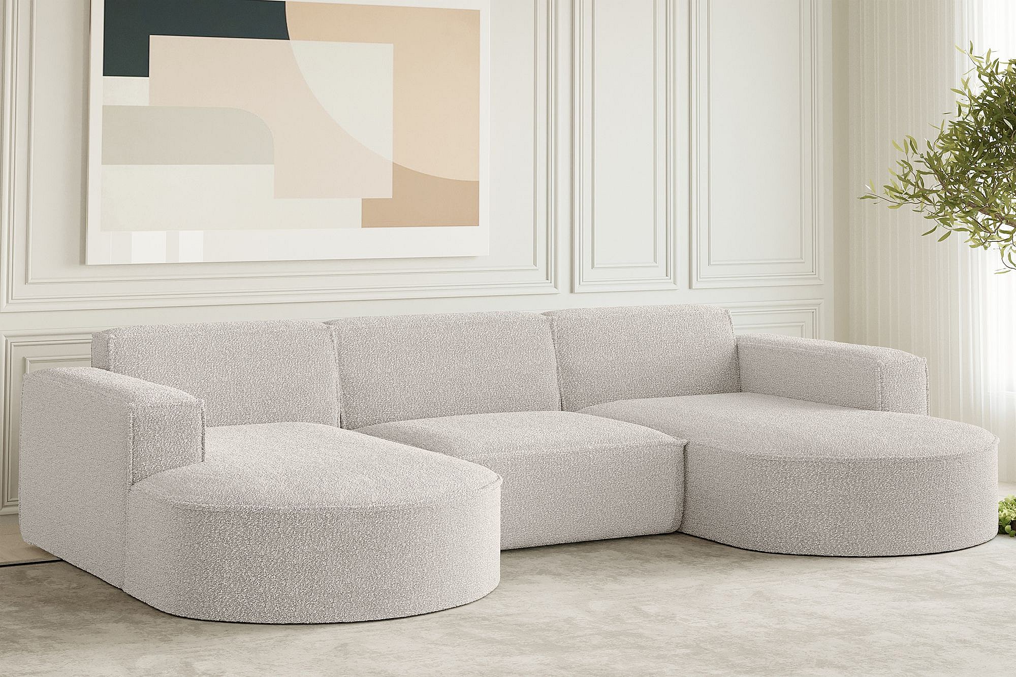 Divano angolare di design, divano a U MODENA tessuto Loop Cream