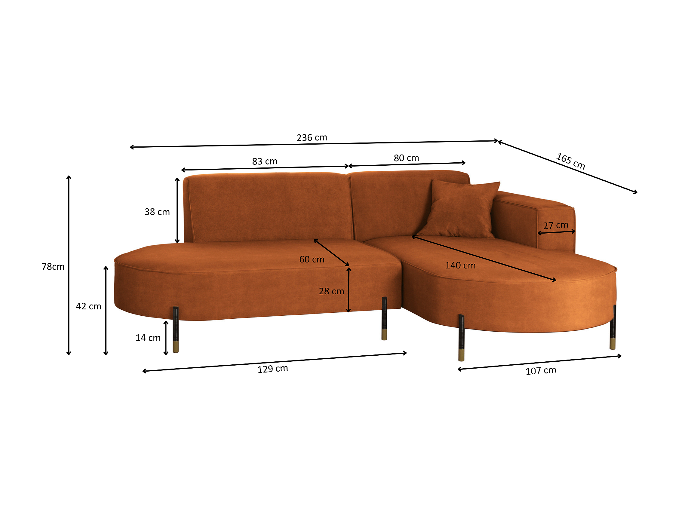 Divano angolare, divano a L, designer Modena, tessuto puro Noel Orange, a destra