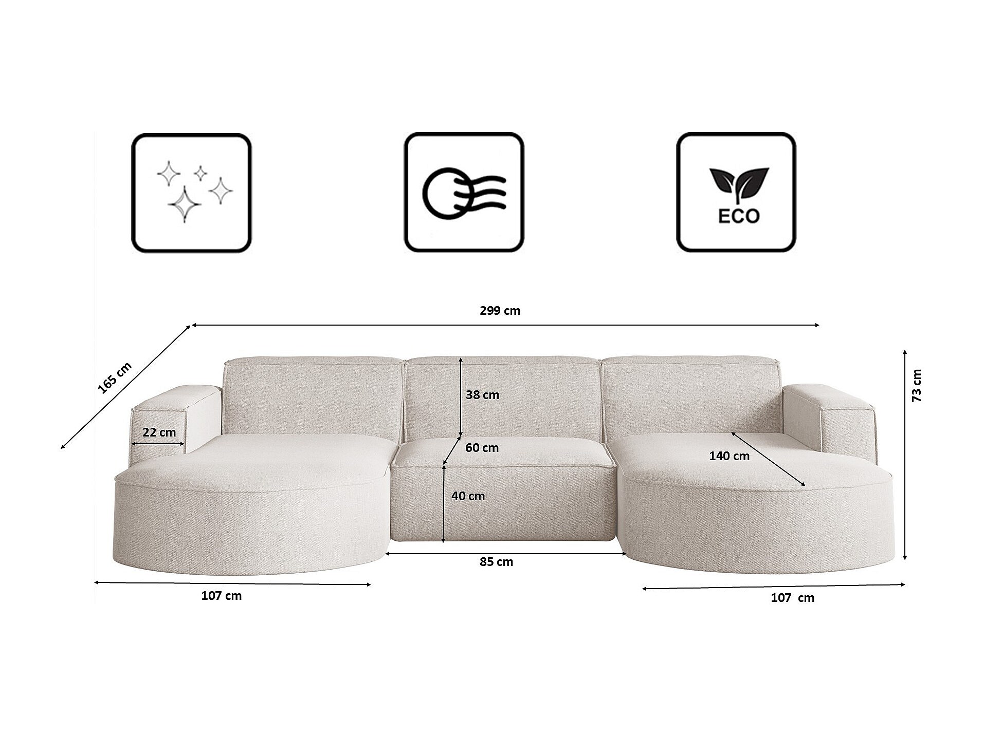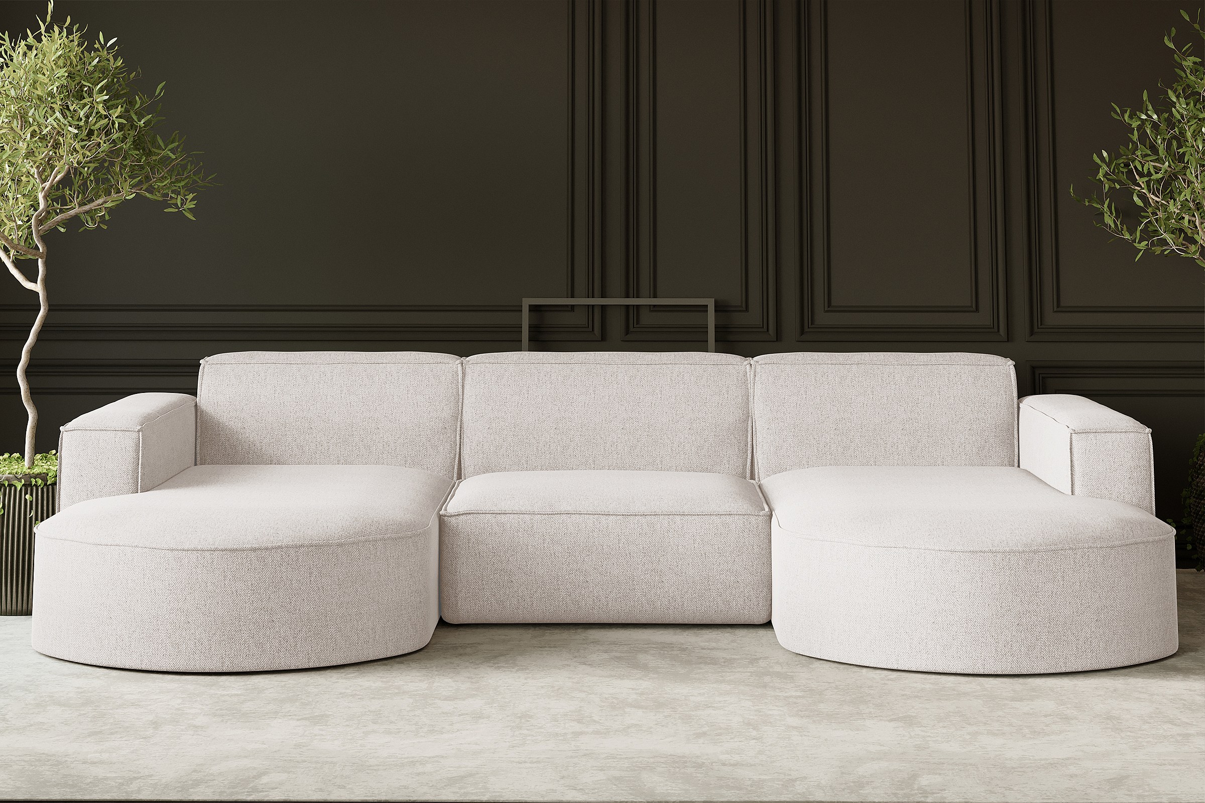Divano angolare, forma a U Modena, tessuto Verita, ecru