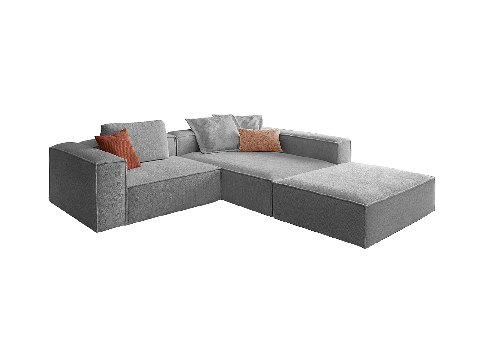 Divano angolare, divano a L, designer Modena, tessuto puro, grigio sorgente, destra