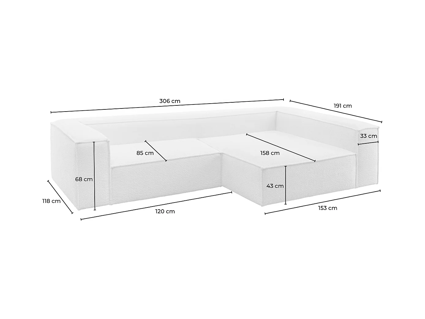 Divano angolare SOSJO Tessuto Grigio chiaro 3 posti Lato destro