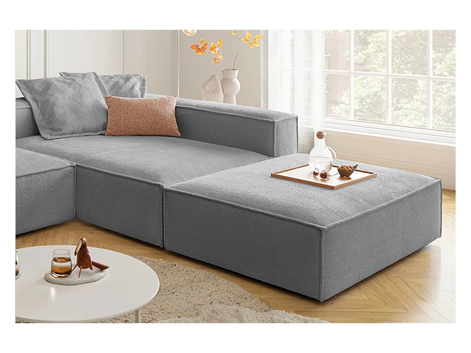 Divano angolare, divano a L, designer Modena, tessuto puro Noel, grigio chiaro, a destra