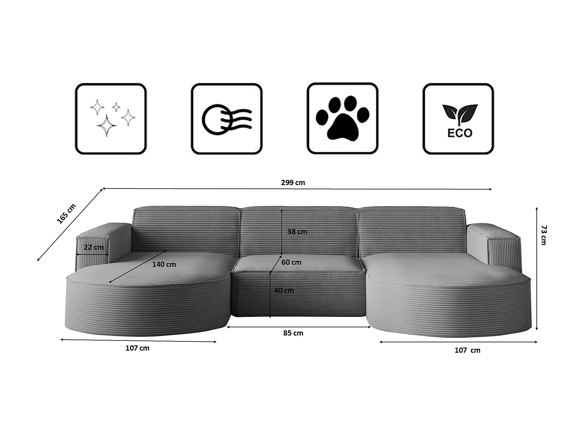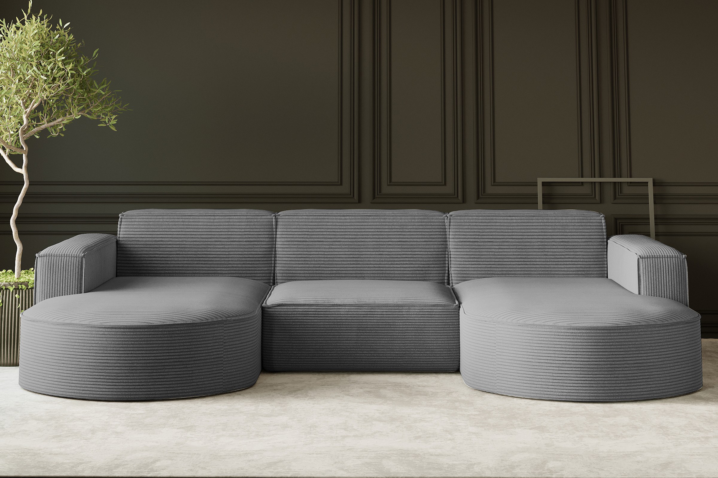Divano angolare, Modena a U, tessuto Poso, argento