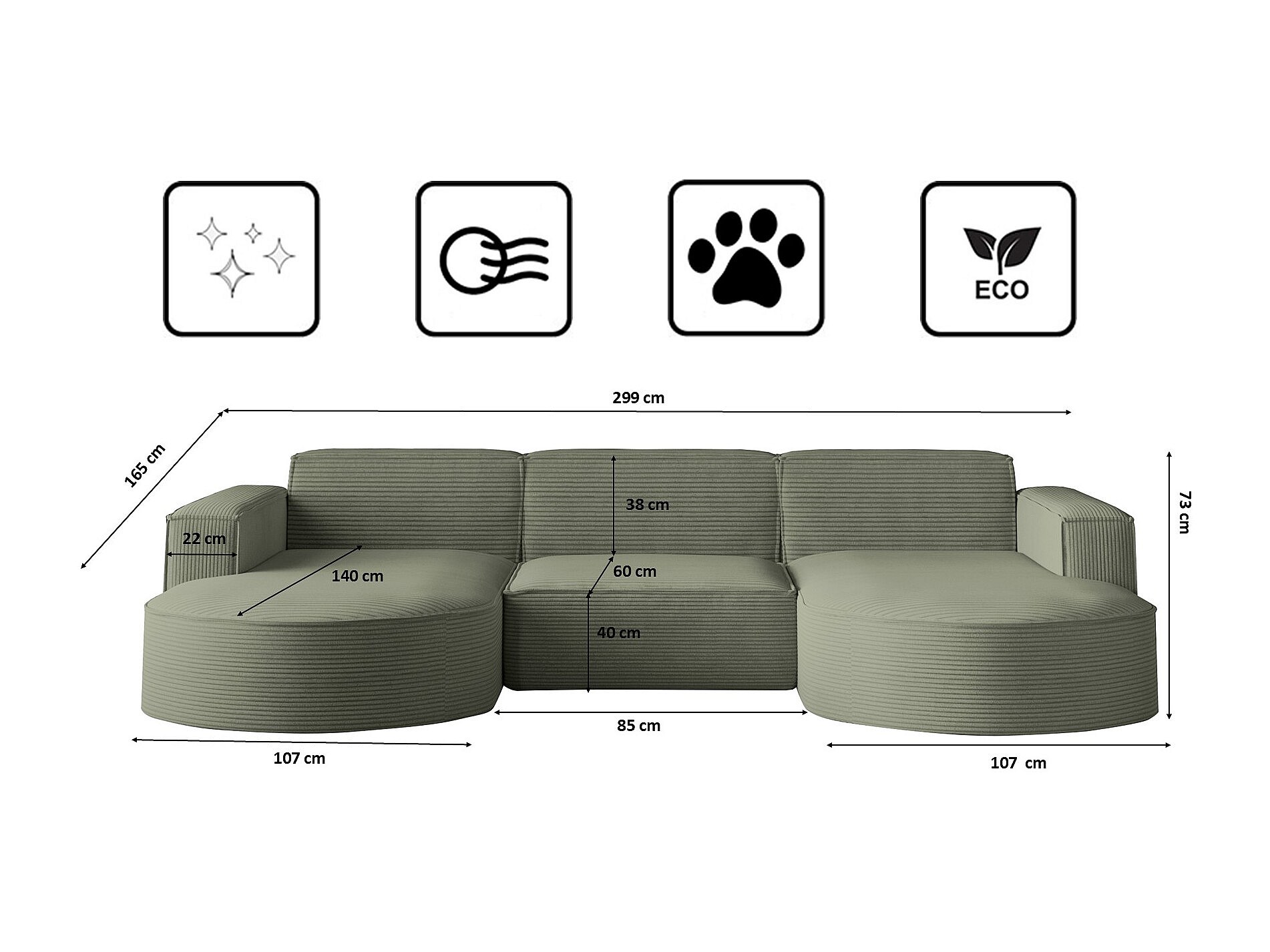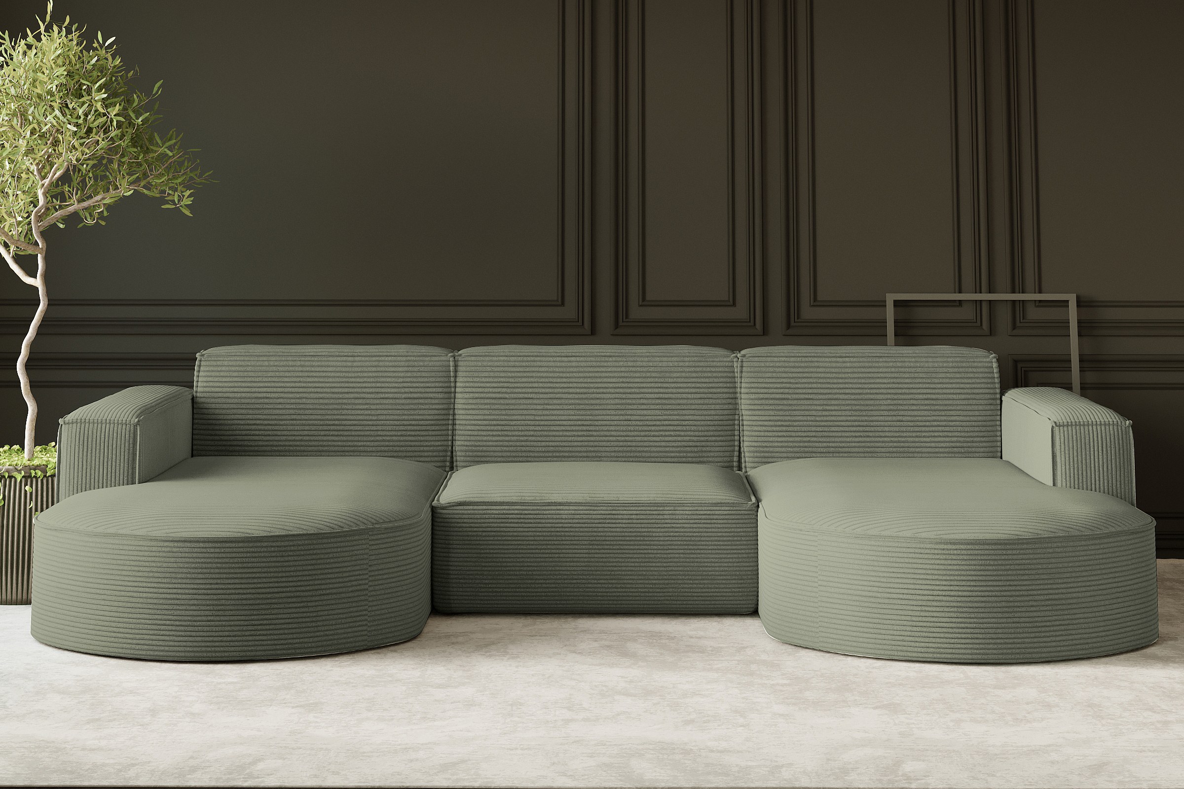 Divano angolare, Modena a U, tessuto Poso, verde chiaro