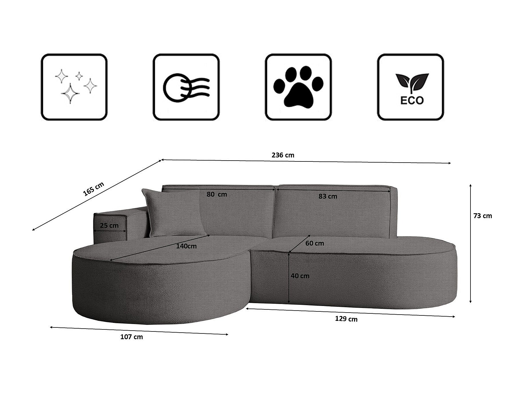 Divano angolare Modena Studio tessuto Artico, antracite sinistra